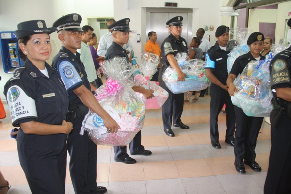 En conmemoración a los 77 aniversarios del Día del Policía, fueron entregadas 7 canastillas en la Sala de Maternidad del Hospital Santo Tomás, iniciativa de las unidades policiales la cual se viene desarrollando desde hace mucho tiempo en el marco del aniversario de la entidad. Las madres que dieron a luz en este día, 14 de abril, y que se hicieron merecedoras de su canastilla, entrega que benefició a siete damas de escasos recursos económicos. En esta actividad participaron autoridades de la Policía de Turismo, Policía de la Niñez y Adolescencia, Grupo de Apoyo al Servicio, Servicio Policial Motorizado Linces, y la Unidad Preventiva Comunitaria. |