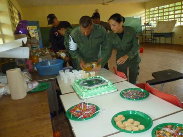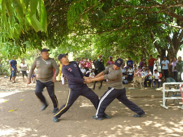 Los actos en conmemoración de la semana del Día del Policía se inició el 7 de abril, con las notas del Himno Nacional, la bendición del acto estuvo a cargo del capellán Noel Pinzón, quien agradeció a Dios por un aniversario más de la entidad. Las palabras centrales estuvieron a cargo del Comisionado Carlos Alberto Rumbo, Jefe de la Zona de Policía de Veraguas refiriéndose a la semana del policía con orgullo sentido de responsabilidad y el alto espíritu de profesionalismo a fin de dar respuestas de seguridad que merece la ciudadanía y todo esto se logre con dedicación. De igual forma se contó con la grata visita de los estudiantes de la escuela Manuela H. de Pérez, quienes fueron agasajados con una merienda en el comedor de la zona, como muestra de agradecimiento por la visita. Durante la semana se realizaron diferentes juegos deportivos donde participaron unidades del DIP, DIJ, la dirección del Tránsito. También se realizó una labor social en la escuela primaria Hato de Jesús ubicada en la comunidad de Buena Vista del distrito de Montijo, en la que se hizo donaciones de zapatos escolares a cinco estudiantes de extrema pobreza. Los estudiantes fueron agasajados con pastel, canastitas piñatas, participaron en juegos, fueron premiados con juguetes y presenciaron la exhibición canina de la Policía Nacional. |