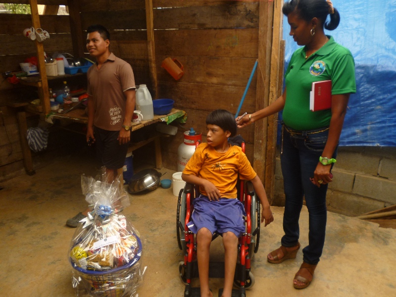 Con motivo de conmemorarse el aniversario 77 del Día del Policía, las unidades de la Zona de Policía de Panamá Este “Chepo” entregaron una canasta de comida seca y una silla de rueda a la familia Cabezón. Esta familia está compuesta por 11 miembros, la silla de ruedas hizo feliz al niño Mailon Cabezón, que sufre de epilepsia con parálisis infantil. |