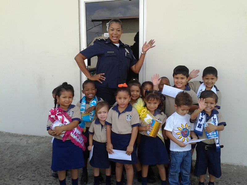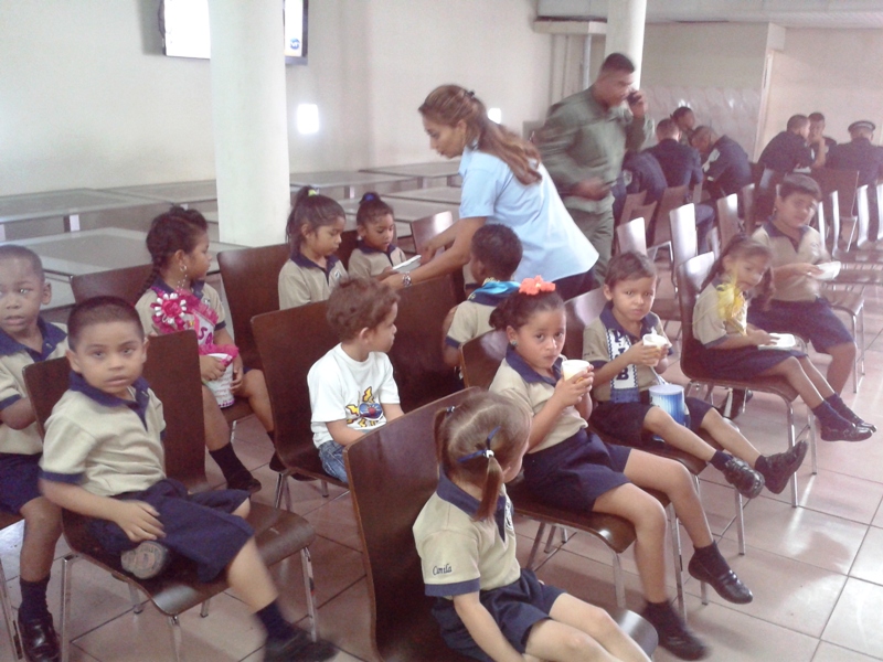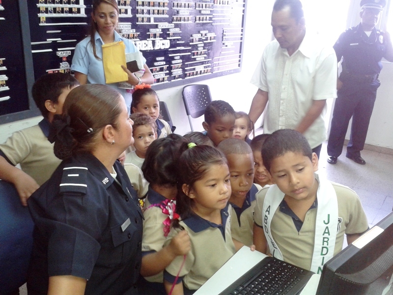 Niños del Centro de Orientación Los Pininos Nueva Generación realizaron visita a la sede de la Decima Zona Policial hoy 15 de abril del año en curso. Fueron atendidos por el Subcomisionado Gregorio Alvarado ejecutivo de esta zona de policía, los maestros José Luis de Salas y Daysi De La Rosa quienes en compañía de trece niños del COIF, visitaron la sede de esta zona policial presentándose formalmente como los candidatos a reyes y reinas para el año 2014 informando que su presencia era con el fin de solicitar la cooperacion de las unidades a beneficio del plantel en mención con el fin de llevar a cabo el arreglo del área de los juegos. Después de finalizada su vista se les ofreció un brindis en el área del comedor de esta sede policial. |