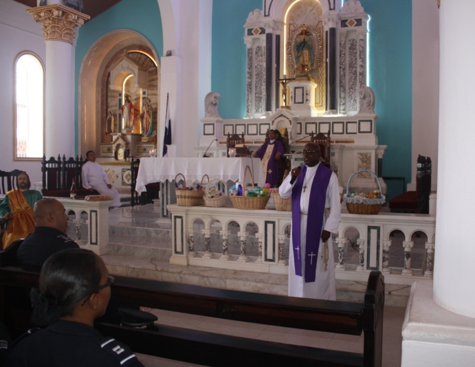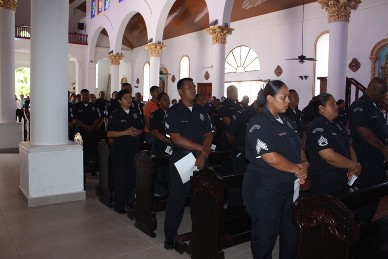 Con una misa solemne miembros de la Policía Nacional de la 2da Zona de Policía de Coclé, celebraron el Día del Policía dando gracias por cada uno de los uniformados, así como también en memoria de los compañeros fallecidos. La misa que se realizó en horas de la mañana de ayer lunes, en la Catedral San Juan Bautista de Penonomé, fue oficiada por el padre Edilberto Ortiz capellán de la 2da Zona, quien en su mensaje felicitó a todas las unidades por su trabajo continuo que realizan día a día arriesgando sus vidas y protegiendo y sirviendo a las comunidades de todo nuestro territorio nacional. A la misa asistieron el gobernador de la provincia de Coclé, el Ingeniero Juan Carlos Rodríguez, el Subcomisionado Fernando Cedeño, Mayor Héctor Wong, el Mayor Manuel Bonome,oficiales, clases agentes, tropas, autoridades gubernamentales así como invitados que acompañaron. Cabe destacar, que el capellán, el padre Roberto Bushell, deleitó a todos los presentes con una canción que lleva un mensaje de paz " Muévete en Mí ". |