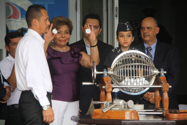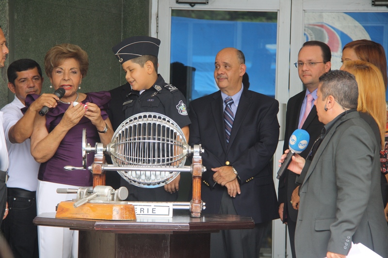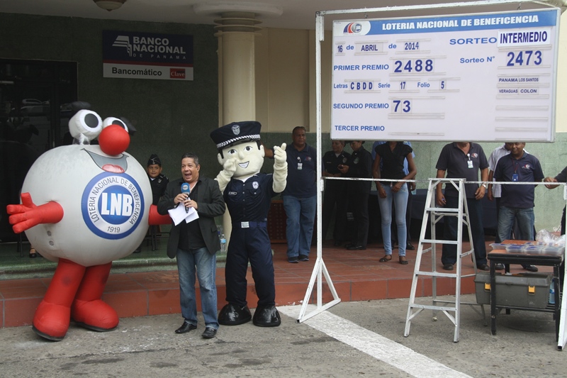 La Policía Nacional en Ancón fue el escenario para que la Lotería Nacional de Beneficencia realizará otro sorteo más, esta vez correspondió miércoles 16 de abril de 2014, todo esto en conmemoración a los 77 años de aniversario del Día del Policía. Las encargadas de llevarle la suerte a miles de panameños fueron las niñas Edrien Olmos Bernal, Andrea Moreira y Julie Soto todas de 7 años de edad, portaron orgullosamente el uniforme de la Policía Nacional, con el rango de Comisionadas. La orquesta de la Policía Nacional deleitó a los presentes, ofreciendo variados repertorios, llenando de alegría, emoción y esperanza a quienes se dieron cita en Ancón para presenciar el sorteo. Quienes se robaron la atención y mirada de todos fue la presencia de Balotín, Polito y Polita que salieron bailando y saludando al público en general. Además del conjunto folclórico de la Policía Nacional, en representación del Centro de Enseñanza Superior, (CES), sus integrantes regalaron a los espectadores varias interpretaciones. El director general de la Policía Nacional, Julio Armando Moltó, acompañó a la gobenadora de la provincia de Panamá Mayín Correa en el sorteo miércolito, junto a los demás miembros del directorio de la institución, esta es una manera de compartir junto a las unidades policiales y la comunidad un año más de aniversario.