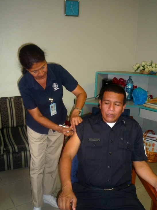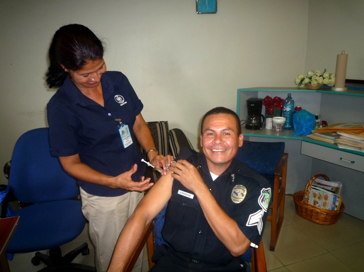 En este sentido, funcionarios de la Policlínica Manuel Paulino Ocaña, se trasladaron hasta la estación de Policía de Penonomé, para vacunar contra la influenza y el tétano, a funcionarios de esta institución de seguridad pública.