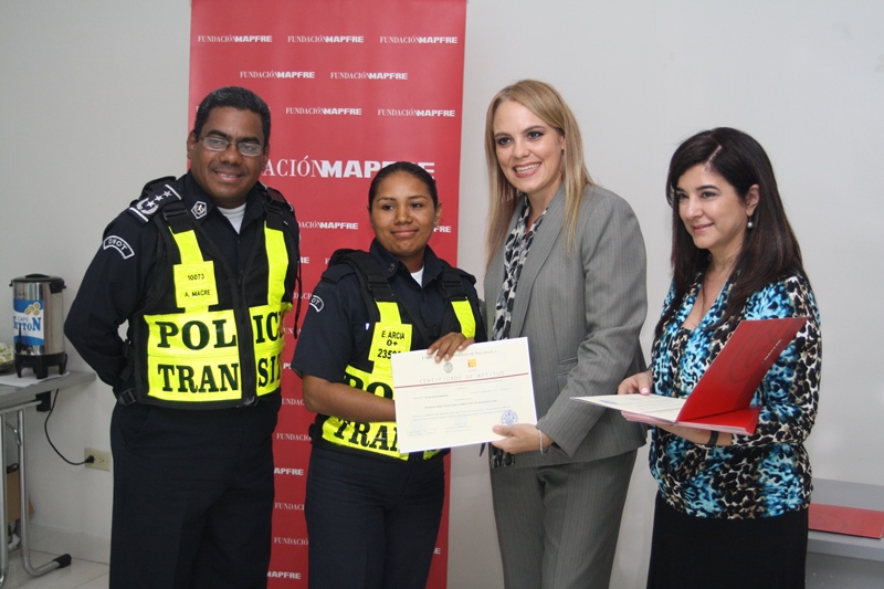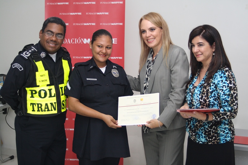 La Policía Nacional específicamente de la Dirección Nacional de Operaciones del Tránsito gradúo 10 unidades policiales, quienes recibieron su certificado académico de la Universidad Pontificia de Salamanca que los acredita como personas preparadas en técnicas didácticas en formación sobre seguridad vial. El objetivo de estos cursos es ayudar a tomar conciencia en la población sobre la importancia de la seguridad vial y provocar un cambio de aptitud con la finalidad que adopte una conducta segura y responsable como usuario de la vía pública, principalmente en su rol de conductor. Hace ya cuatro años que la Fundación Mapfre está en Panamá, apoyando activamente una serie de programas y proyectos, en su mayoría relacionados con educación, cultura, medio ambiente y seguridad vial. En este sentido representantes de la fundación agradecieron a la Policía Nacional por interesarse en capacitar a su personal en este tema, contando con un grupo de unidades preparadas en técnicas didácticas para impartir clases de seguridad vial. Entre las unidades que se hicieron acreedores a estos diplomas están: -Adán Fernández Rosero -Aldo Macre Quijada -Elmer Martínez Martínez -Elvia Arcia -Guillermo Guzmán -Katia Valdés -Marixenia Quintero Concepción -Mayté Chiam Clark -Víctor De gracia Arauz -Yasiel Barrios Rodríguez
