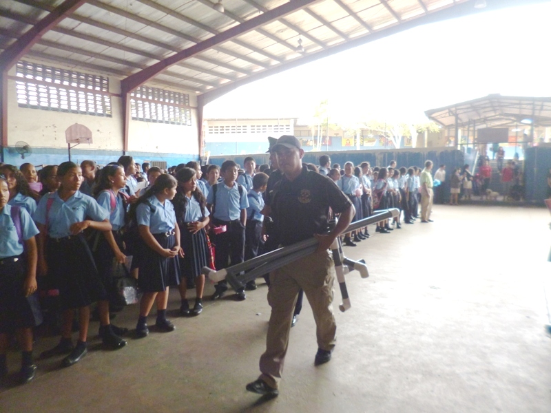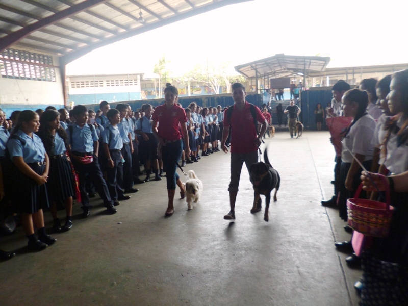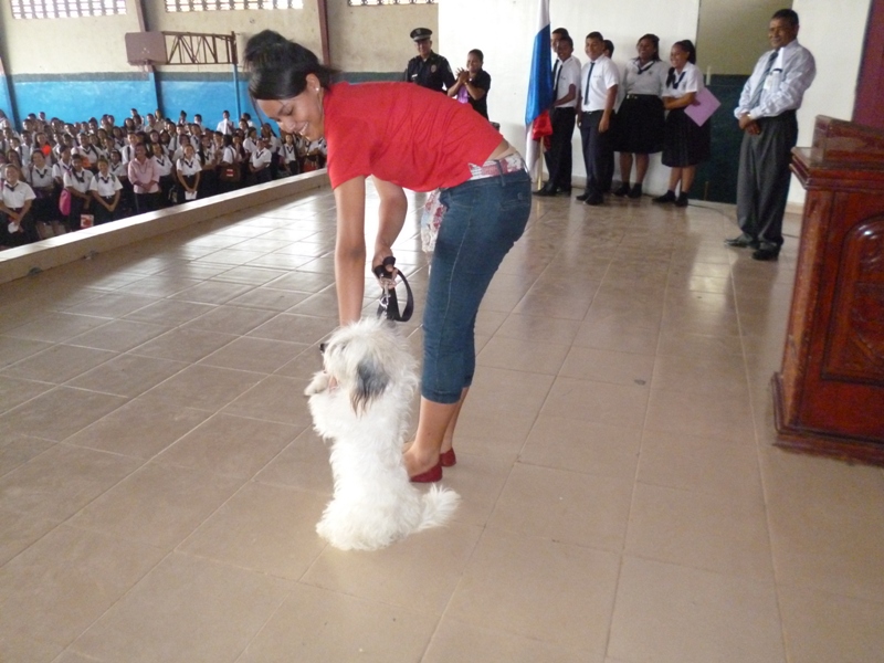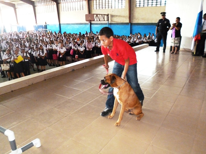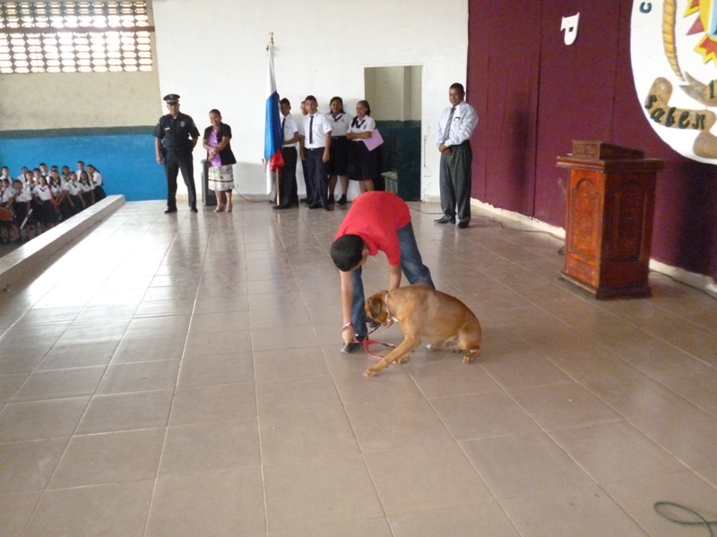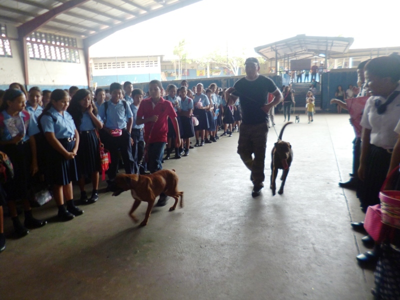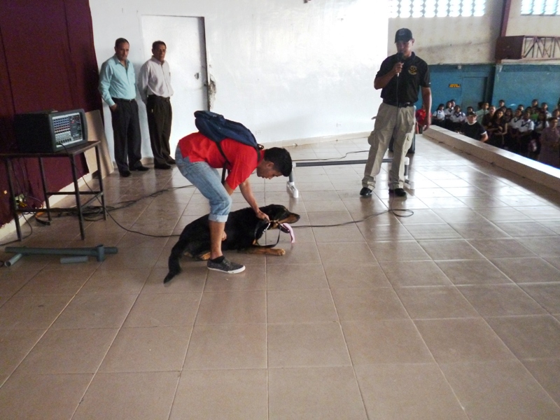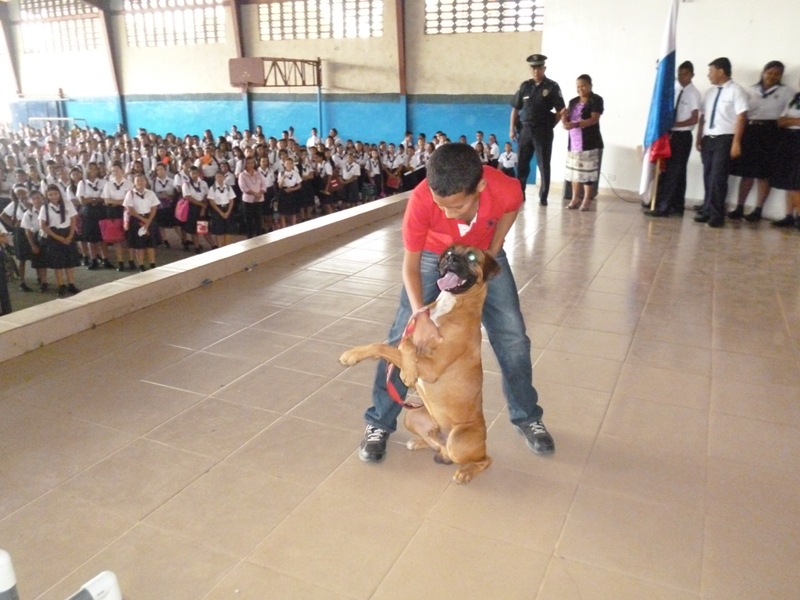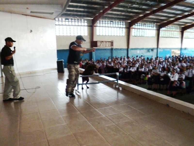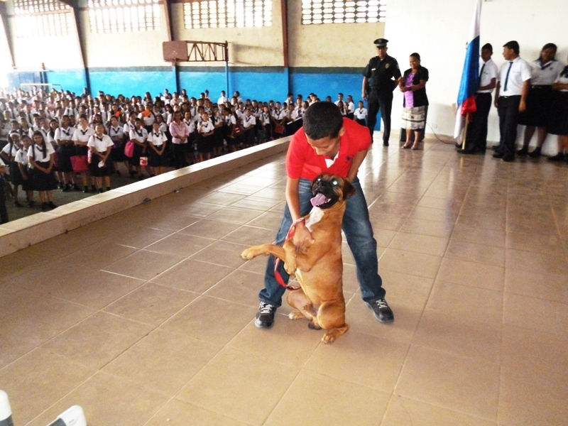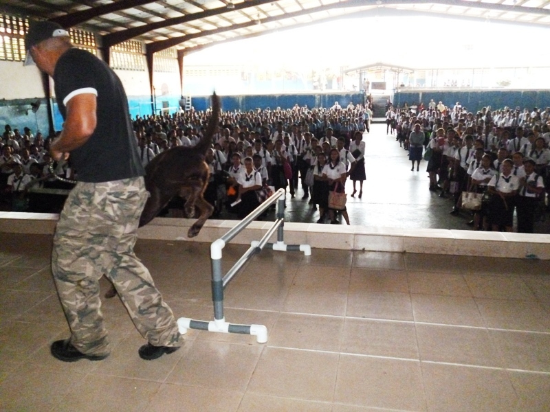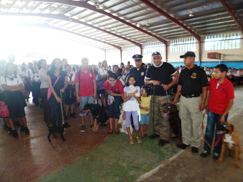 El Grupo Juvenil Canino (GRUJUCAN) de la Zona de Policía de Panamá Oeste, ofreció un gran show a todos los estudiantes del colegio Moisés Castillo Ocaña, ubicado en La Chorrera. El espectáculo fue dirigido por el guía canino de esta zona, el Sargento Gustavo Ureña, quien presentó a cada uno de los integrantes de este muy dinámico grupo juvenil. La directora del plantel, la profesora Mariela Ríos de Salinas, agradeció la participación de la Policía Nacional y por ende la de estos carismáticos jóvenes, a la vez disfrutó junto a sus estudiantes de la presentación. Locky y Maison fueron algunos de los canes que cautivaron al público estudiantil del colegio, con sus agilidades y destrezas aprendidas en este grupo de adiestramiento. Esta actividad motiva y resalta la importancia de los canes como mascotas y amigos del ser humano, fortaleciendo ese amor y responsabilidad de sus dueños para con los mismos, a la vez se enfatiza en estos valores, que son importantes en la vida y desenvolvimiento de cada uno de los que integra este grupo canino.