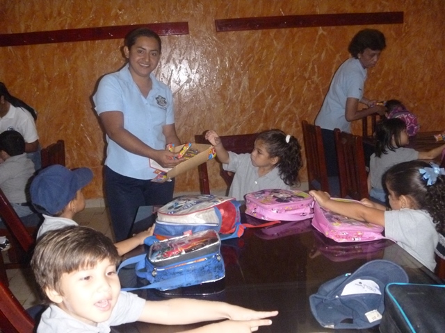 Para culminar la visita los pequeñines fueron a visitar el área del comedor donde se les despidió con un refrigerio. |