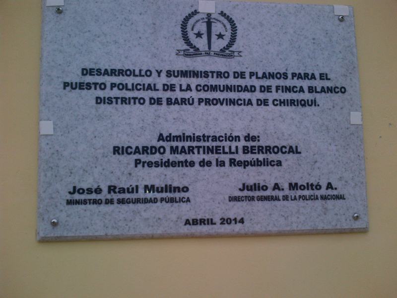 El Ministro de Seguridad Publica, José Raúl Mulino, inauguró este viernes 25 de abril una nueva subestación policial en la comunidad de Finca Blanco, distrito de Barú. Al evento asistió la Gobernadora de la provincia de Chiriquí, Rita Sittón de Fundora, Comisionado Julio César Lasso Vergara, jefe de la zona policial de Chiriquí, Comisionado Feliciano Benítez, Jefe del Batallón Occidental del Servicio Nacional de Frontera, miembros de la junta técnica e invitados especiales de la comunidad de Finca Blanco. "La comunidad tiene que involucrarse más a favor de la seguridad, saber que la cooperación es fundamental y que tiene amigos en esta nueva subestación policial y que los conozca con nombre y apellidos, recalcó el Ministro de Seguridad. Los ciudadanos de Finca Blanco, manifestaron que para ellos es muy importante que se haya construido una nueva subestación de la Policía Nacional en ese pueblo para combatir la delincuencia, pero le solicitaban al Ministro de Seguridad un nuevo vehículo policial. El jefe de la zona policial de Chiriquí, Comisionado Lasso, se comprometió con los moradores del lugar darle un vehículo policial, para brindarles más seguridad a esta comunidad y aseguró que las unidades policiales van a estar más motivadas con estas nuevas instalaciones y realizarán mejor su trabajo.