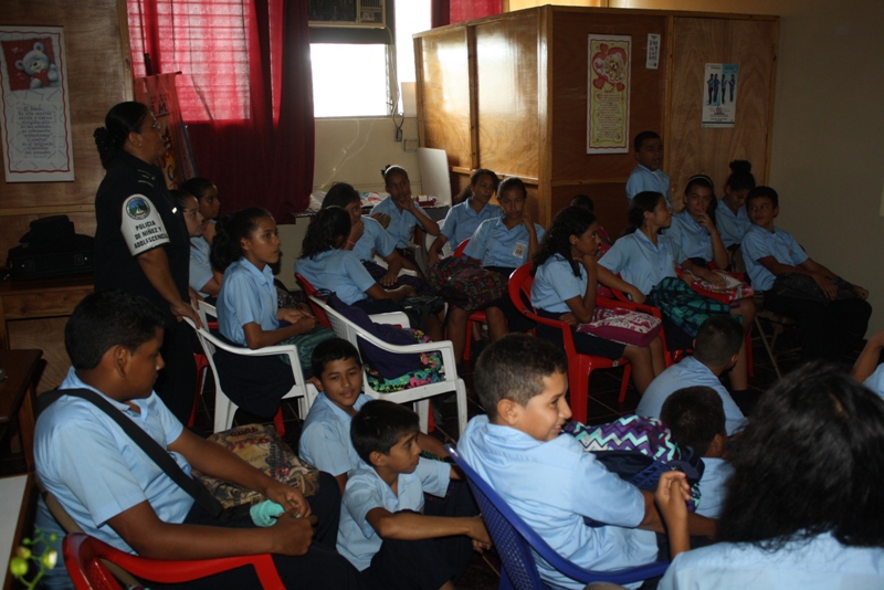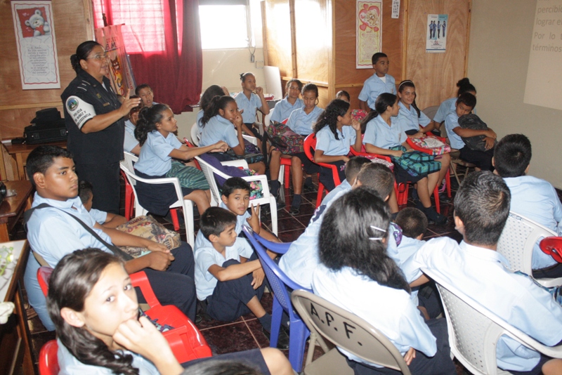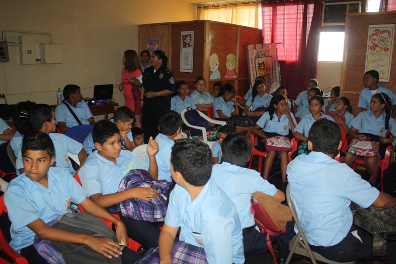 Unidades de la Policía de Niñez y Adolescencia, realizaron en días pasados en horas de la mañana una jornada de capacitación, denominada “Ser Lider”, en el Colegio Beatriz Miranda de Cabal, ubicado en el distrito de Dolega. Según la profesora Magdis Palacio, orientadora y actual coordinadora del Programa Jovenes Contra el Delito 2014, expresó que en esta capacitación participarón unos 50 estudiantes de todos los niveles. “Desde el 2004 se inicia este grupo, ha dado resultados positivos tanto fuera y dentro del colegio. Ha tenido buena proyección con la comunidad y se busca que más estudiantes se integren a este programa. Y como en todos los colegios existen estudiantes negativos, esperamos que nuestros jovenes inyecten una dosil de motivación, ejerzan un liderazgo de forma positiva y sean agentes multiplicadores”, acató la profesora Palacio. Por otro lado la señorita Marilys Santos, estudiante del Grupo Jóvenes Contra el Delito, dijó: "somos chicos líderes capaces de prevenir, tambien orientamos a más jovenes para que no caigan en los caminos de la delincuencia". La Subteniente María Gonzalez, de la Policia de Niñez y Adolescencia, de esta zona policial, manifestó que se esta realizando capacitaciones en toda la provincia a los adolescentes que pertenecen al Programa de Jóvenes Contra el Delito, buscando que sean lideres dentro y fuera de sus planteles, que lleven mensajes de motivación. Igualmente, deben hacer dentro de los planteles patrullajes juveniles, son mediadores y hablan de los temas en diferentes planteles educativos como prevención, droga, violencia y delincuencia. Son entes multiplicadores a niños de grados más pequeños. Esto es un programa que lleva adelante la Policía Nacional a nivel nacional. |