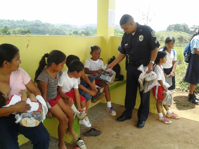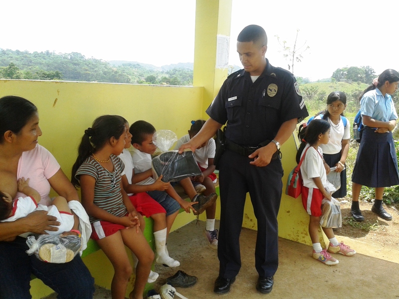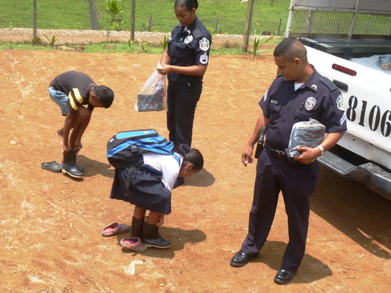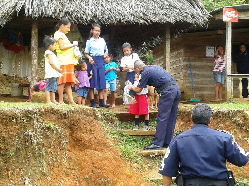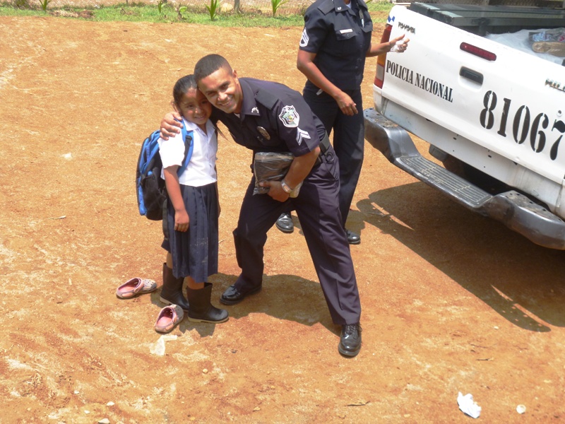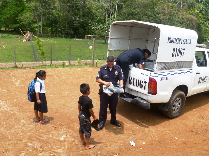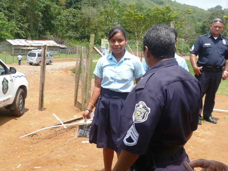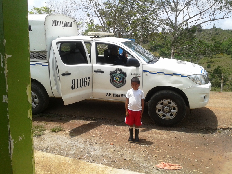 Unidades de la Subestación de Capira, de la Zona de Policía de Panamá Oeste llevaron alegría a las Escuelas de Clara Arriba y El Harino, ubicadas en el distrito de Capira este miércoles 30 de abril de 2014. La Subcomisionada Alliety Rodriguez Jefa del Área “B” Capira en compañía de las unidades a su cargo, llevaron alegría a niños que estudian en escuelas de difícil acceso como lo son las Escuelas del Harino y Claras Arriba donde entregaron material didáctico y la entrega de 170 pares de botas las cuales son de gran de gran ayuda para estos niños por que se avecina la época lluviosa y las calles no son transitables para los carros y estos niños deben caminar largas distancias para llegar a sus hogares, estos niños al momento de recibir sus botas inmediatamente con mucha alegría se quitaban sus calzados y se ponían el regalo que con tanto cariño recibieron por parte de las unidades policiales. La profesora Mónica Ayala quedó muy satisfecha y agradeció a la Subcomisionada Rodriguez y a la Policía Nacional por su gran apoyo a estos niños de escasos recursos.