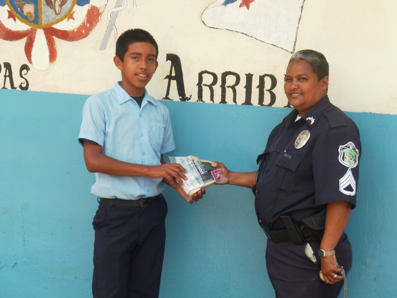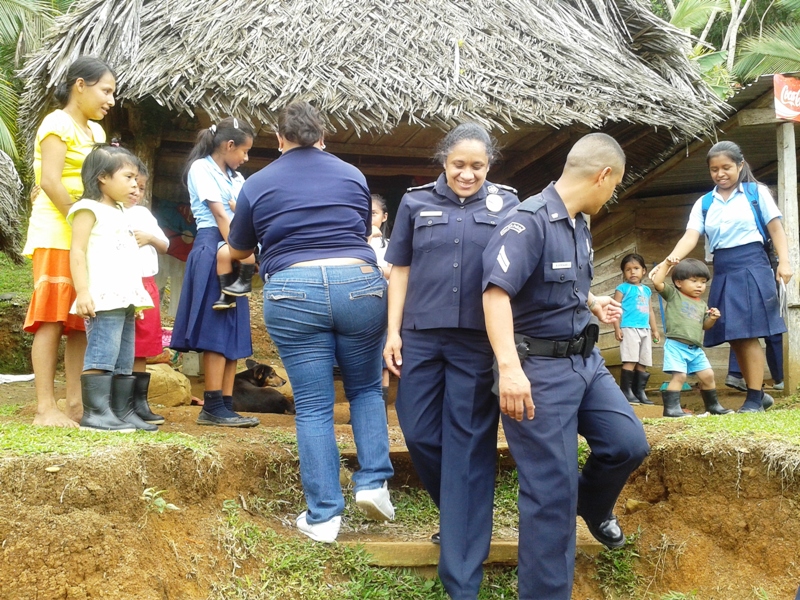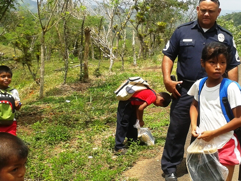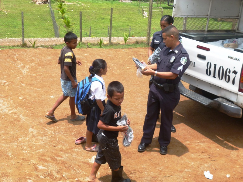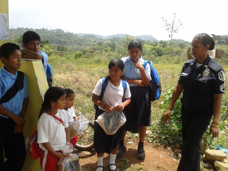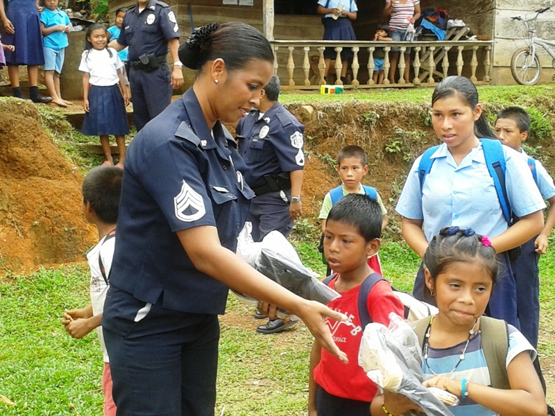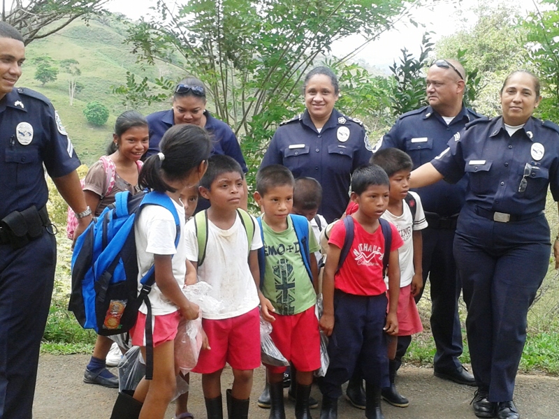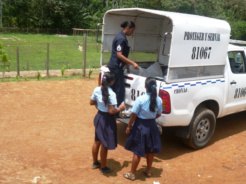 Unidades de la Subestación de Capira, de la Zona de Policía de Panamá Oeste llevaron alegría a las Escuelas de Clara Arriba y El Harino, ubicadas en el distrito de Capira este miércoles 30 de abril de 2014. La Subcomisionada Alliety Rodriguez Jefa del Área “B” Capira en compañía de las unidades a su cargo, llevaron alegría a niños que estudian en escuelas de difícil acceso como lo son las Escuelas del Harino y Claras Arriba donde entregaron material didáctico y la entrega de 170 pares de botas las cuales son de gran de gran ayuda para estos niños por que se avecina la época lluviosa y las calles no son transitables para los carros y estos niños deben caminar largas distancias para llegar a sus hogares, estos niños al momento de recibir sus botas inmediatamente con mucha alegría se quitaban sus calzados y se ponían el regalo que con tanto cariño recibieron por parte de las unidades policiales. La profesora Mónica Ayala quedó muy satisfecha y agradeció a la Subcomisionada Rodriguez y a la Policía Nacional por su gran apoyo a estos niños de escasos recursos.