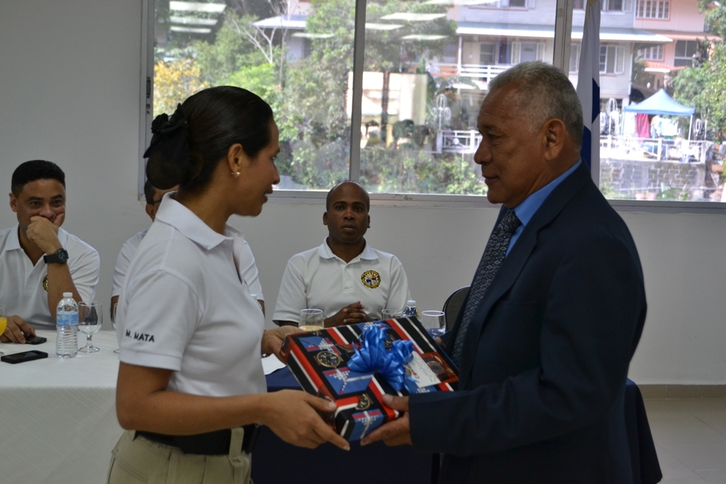 El Director General de la Policía Nacional Julio Armando Moltó participó en la ceremonia de reconocimiento por los años de servicio del Mayor Faustino Tejada y el Sargento Ernesto Castillo quienes gozarán de su jubilación a partir de la fecha. El cortejo a los dos oficiales pertenecientes a la Dirección de Investigación Judicial (DIJ) tuvo lugar en el salón de evento de esta dirección ubicada en Ancón, contando con la participación además del Director General, el comisionado Manuel Catillo jefe de la DIJ, el subcomisionado Miguel López subdirector de investigación, el subcomisionado Simón Henríquez de Investigaciones Criminales y el subcomisionado Flavio Vergara de Recursos. Entre un breve recuento de las labores desempeñadas por el Mayor Faustino Tejada se dijo durante el acto que, sus labores iniciaron en diciembre de 1985 con el rango de Detective Asignado al G-2, de las extinguidas Fuerzas de Defensa. Luego cumplió satisfactoriamente con los requerimientos del primer curso de Agente Antidrogas en la Academia de Detectives Antonio Castorina, ubicada en ese entonces en la Provincia de Colon en el Antiguo Fuerte Gulick. Después de transcurrir treinta años realizando un arduo trabajo, el mayor Faustino Tejada deja la Policía Nacional con el cargo de jefe del Departamento de Operaciones en la DIJ, cumpliendo así con su compromiso de Proteger y Servir al país. Tanto el mayor como el sargento saliente recibieron medallas al merito y al servicio, así como placa al servicio distinguido. Regalos y hasta una caricatura dedicada al mayor por parte de las unidades de investigación. La ceremonia fue amenizada por trovadores, conjunto típico y un video de recuerdos que deja el mayor a sus compañeros. De igual forma los invitados compartieron un desayuno con los agazajados. Entre los participantes asistieron también oficiales jefes de divisiones, departamentos y subdij quienes extendieron un fuerte abrazo y bendiciones a ambos oficiales salientes. La Policía Nacional extiende agradecimiento por su aporte a la institución y al país… |