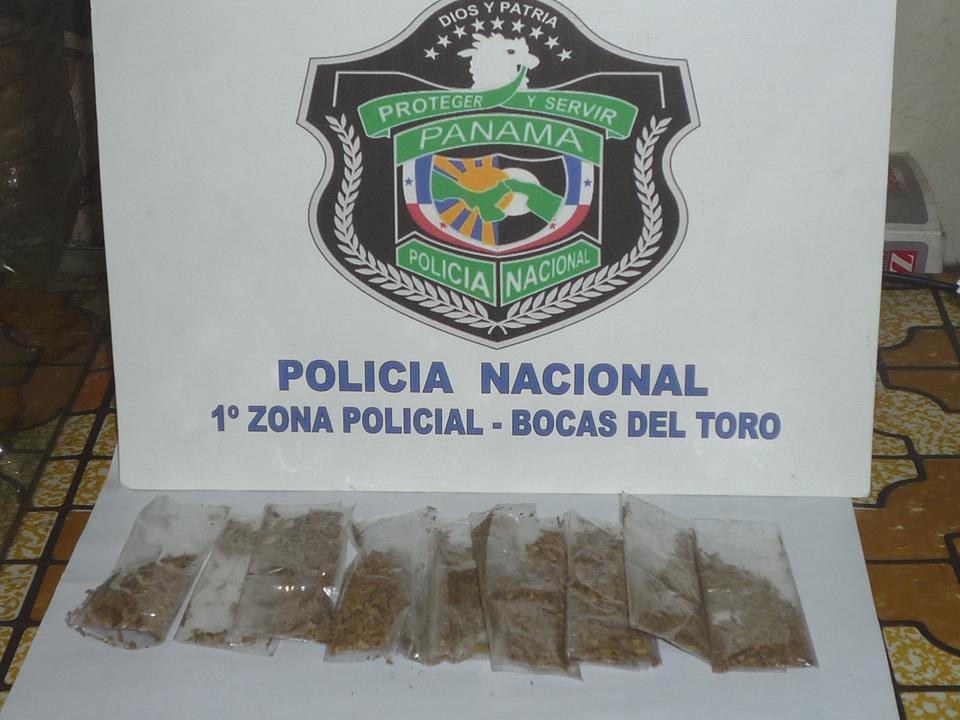 Unidades de la Policía Nacional de Servicio en la Estación Policial de Changuinola realizaron una diligencia de allanamiento en coordinación con funcionarios del Ministerio Público en una residencia en el Silencio, corregimiento del Empalme, donde se logra decomisar 12 envoltorios plásticos transparentes con marihuana, igualmente se logra encontrar dinero que se presume pueda ser producto de la venta de esta sustancia. En el lugar se logra retener a un menor de 17 años de edad, quien es sospechoso de ser el propietario de esta sustancia. Se le dieron a conocer sus derechos, la Policía Nacional contactó a sus padres y fue puesto a ordene de las autoridades correspondientes. |