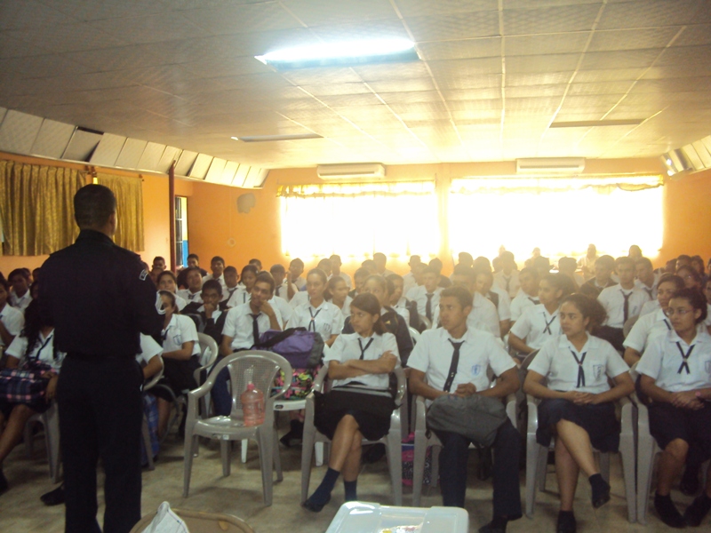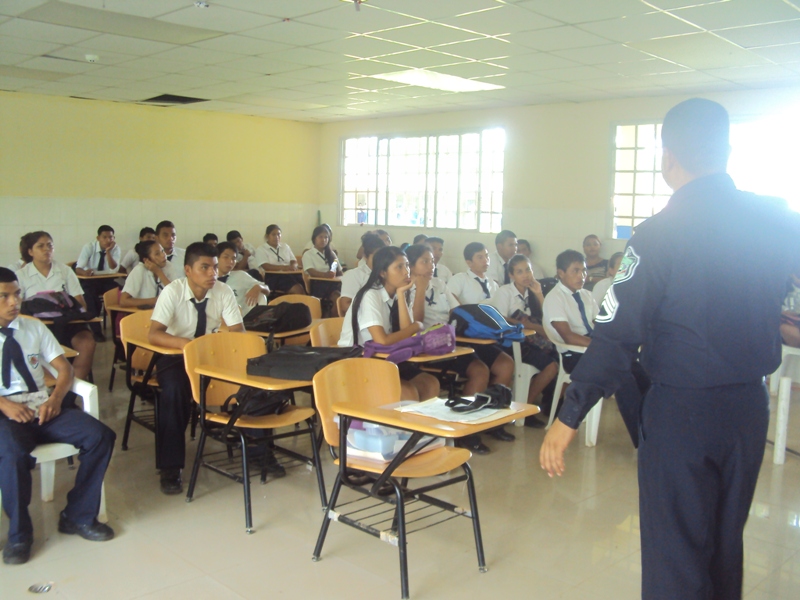 Con el objetivo de incrementar a más jóvenes chiricanos que ingresen a la fila de la Policía Nacional, agentes del orden público, realizaron una gira de docencia y promoción a la carrera policial e investigación de campo de las secciones de trabajo social y del DIP, en la provincia, con una duración de una semana. La gira estuvo a cargo del Sargento 1ro. Eliecer Guerra y la licenciada Marjorie Frago, Trabajadora Social del departamento de Reclutamiento y Selección en la ciudad de Panamá. Estas unidades visitaron la sscuela secundaria de Puerto Armuelles y los colegios secundarios de Aserrio, Renacimiento, Volcán, Tole, Las Lajas, San Félix, el IPT de la Concepción, el Colegio Secundario Daniel O. Crespo, Colegio Francisco Morazán, IPT Arnulfo Arias Madrid y el Instituto David, donde fueron atendidos unos 1,374 estudiantes, a quienes se les impartió la docencia de proyecto de vida, metas, logros y todo lo referente a la carrera policial. Igualmente, asistieron a las emisoras: Radio Mi Preferida, ubicada en el distrito de Barú, Radio Chiriquí y Ondas Chiricanas en la ciudad de David. También se realizarón volanteos en la comunidad de Volcán y en el área de San Félix. |