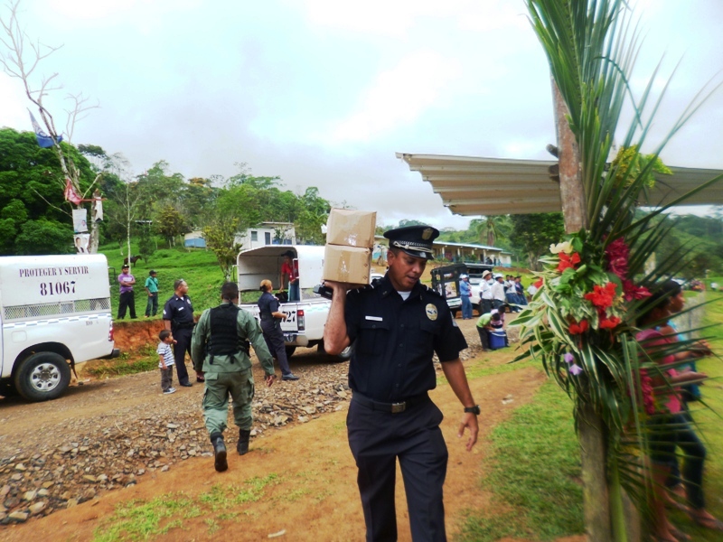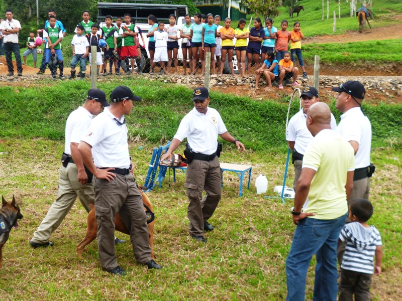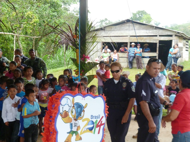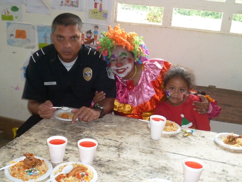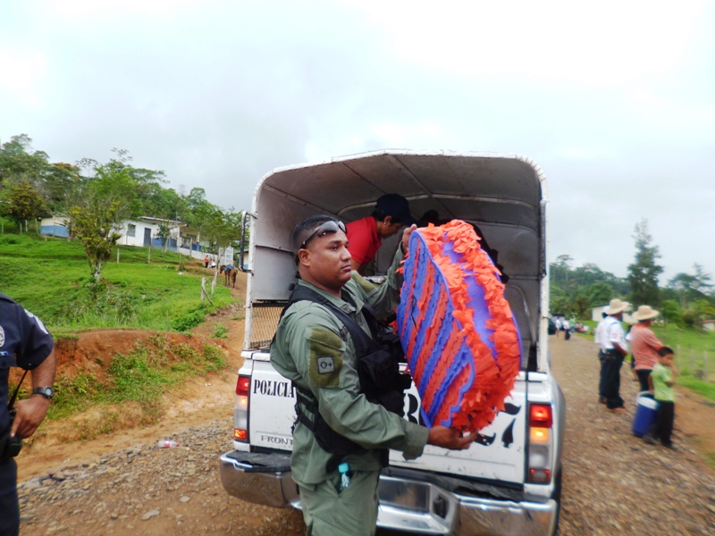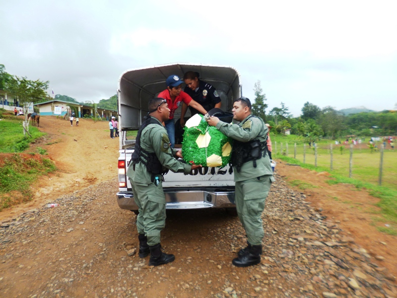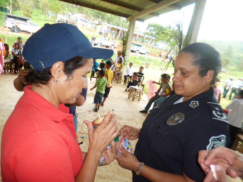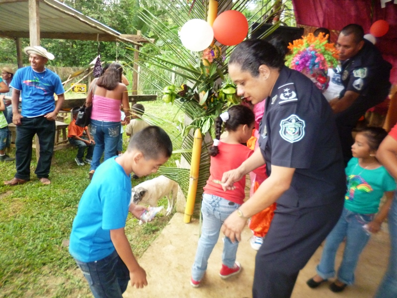 Atendiendo invitación realizada a las unidades de la decima zona policial, por la dirección del Centro Básico de Claras Arriba del corregimiento de Ciri Grande en el distrito de Capira realizaron un convivio con los estudiantes, este martes 20 de mayo del año en curso. La Subcomisionada Alliety Rodriguez Jefa del Área “B” en representación del Comisionado Domingo Espitia P., y el personal del departamento de seguridad ciudadana se hicieron presentes en la Escuela de Claras Arriba en donde se conmemoraba el 44 aniversario, esta actividad estuvo animada por la payasita Cascarita (Sargento 1ro Agenick Ladrón de Guevara) quien contagió de alegría haciéndose presente los niños de las escuelas aledañas. Cabe señalar que se le obsequiaron piñatas, dulces, capotes los cuales estamos seguros que serán de gran provecho para estos niños ya que estamos en temporada de lluvia, el cierre de esta actividad estuvo amenizado por la agilidad y destreza de los perros de la Unidad Canina de la Policía Nacional. La alegría en el rostro de los niños es el mejor estimulo para la familia uniformada, ya que con ello hacemos honor a nuestro glorioso lema “PROTEGER Y SERVIR” |