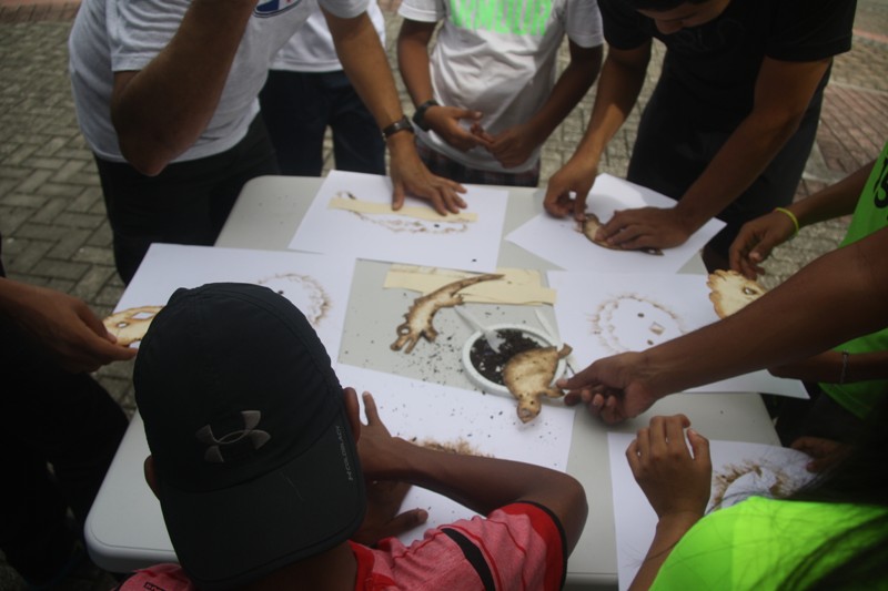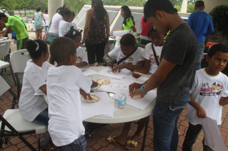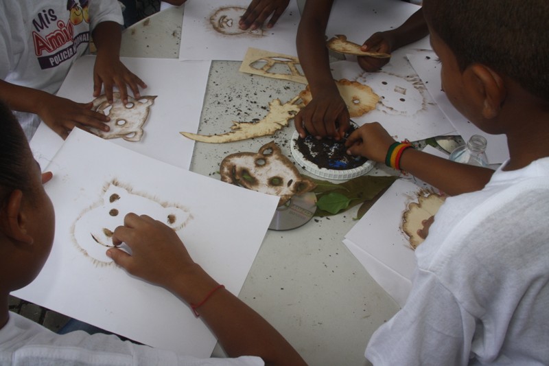 Combinar los elementos que nos brinda la naturaleza con el talento humano, da como resultado hermosas creaciones; siendo esta una de las lecciones aprendidas por 36 niños y niñas, que con alegría se reunieron en La Plaza de la Cultura y de las Etnias en Amador para ser instruidos en la técnica de pintar con tierra, bajo la guía del artista y Diseñador Gráfico, Iván Ezequiel Rodríguez. Estos pequeños, que forman parte del equipo de niños corredores de El Chorrillo y de Arraiján denominados "Team Gladiadores" y de los niños de la comunidad de Curundú, acompañados por los uniformados de la Unidad Preventiva Comunitaria (UPC) de la Policía Nacional, estuvieron muy atentos de las instrucciones brindadas por el licenciado Rodríguez; quien además les habló de la importancia del reciclaje en el cuidado del medio ambiente y de la protección de los animales. Llenos de orgullo, los niños y niñas mostraron sus creaciones hechas con tierra, destacándose la figura de animales y en las que utilizaron como herramientas las hojas de los árboles y materiales reciclados. Para el licenciado, Iván Rodríguez, quien es un artista amante de la naturaleza y Diseñador Gráfico, que actualmente desempeña esta profesión en la Policía Nacional, es fundamental que los niños se involucren con la naturaleza, con la fauna y flora que enriquecen nuestro planeta tierra, pero sobre todo, aprendan a respetarlas y cuidarlas. Por su parte, el subteniente Nicolás García, entrenador y organizador del "Team Gladiadores", expresó que esta iniciativa surgió al observar los bellos trabajos hechos con tierra que realiza el lic. Rodríguez, y al plantearle la idea, gustoso se mostró de compartir su talento con los niños y niñas. García explicó que además de incentivar el deporte, se busca ofrecerle a los pequeños nuevas experiencias educativas, en las que puedan explorar su lado artístico e incentivar la necesidad de proteger al medio ambiente.