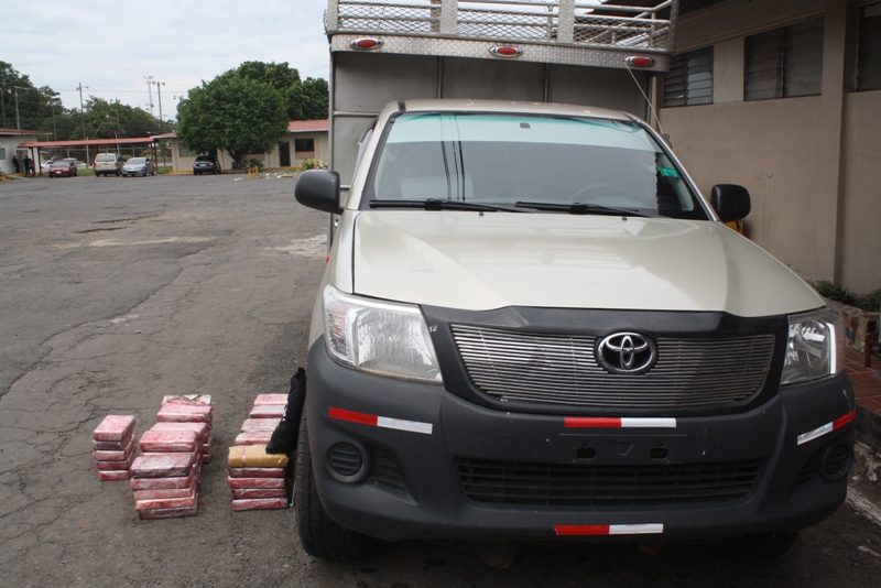 Unidades del Departamento de Investigación Judicial (DIJ) de Chiriquí, lograron decomisar 55 paquetes con cocaína que iban dentro de un vehículo con doble fondoy se retuvo a un sujeto de 28 años. Hecho ocurrido en la comunidad de Volcán, distrito de Bugaba. El hallazgo se dio mediante un allanamiento, realizado por las unidades de la Sección de Narcóticos de la DIJ en compañía de los funcionarios de la Fiscalía Relacionada con Droga de la provincia de David, a dicho automovil Toyota Hilux que mantenía un doble fondo en el vagón donde se encontraron 55 paquetes rectangulares forrados de una cinta adhesiva, que al efectuarle la prueba de campo resultó ser cocaína. El joven aprehendido, la droga incautada y el auto, quedaron a órdenes de las autoridades competentes para las investigaciones de rigor. |