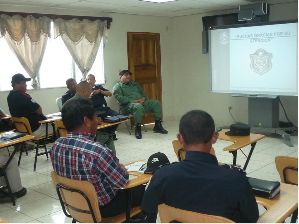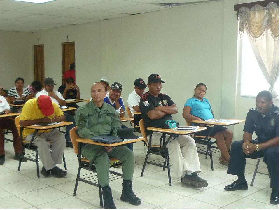 Unidades de la Oficina de Seguridad Ciudadana de la 1º Zona Policial de Bocas del Toro realizaron esta tarde la reunión mensual con todos los presidentes y miembros de las diferentes juntas directivas de los Programas Vecinos Vigilantes de la provincia de Bocas del Toro donde estuvieron dando a conocer todas las actividades preventivas que realiza cada Jefe de Área Policial en su corregimiento. En la reunión estuvieron presentes por parte de la Policía Nacional el Subcomisionado César Herrera en representación del Comisionado Javier Castillo, Jefe de la 1º Zona Policial, todos los Oficiales Jefes de Área, unidades del Tránsito, del DIP y del Servicio de Niñez y Adolescencia quienes tomaron notas sobre todas las inquietudes dada por los miembros activos de los programas en mención. |