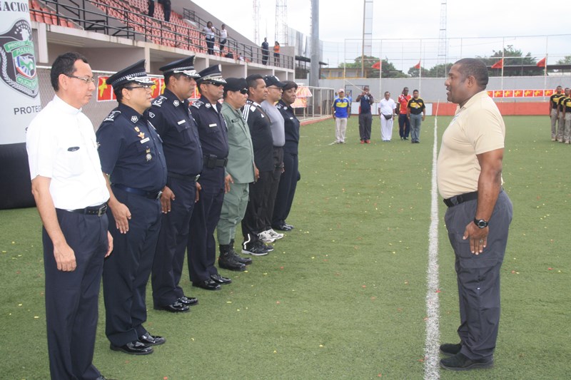 En el estadio Muquita Sánchez de La Chorrera, se inauguró recientemente el Décimo Torneo Interzona de fútbol de la Policía Nacional. El acto contó con la presencia del Comisionados René Moses, Director Nacional de Recursos Humanos, la Subcomisionada Mirta Mosquera, jefa de Bienestar Policial y Familiar, el Comisionado Domingo Espitía, Jefe de la Zona de Policía de Panamá Oeste; el Comisionado Darío Díaz, Jefe de la Unidad de Control de Multitudes, Reverendo Padre Edgar Flores, Capellán de la Policía Nacional, señores clases, agentes y personal no juramentado de la Policía Nacional. En este evento participan 17 equipos de categoría abierta, que incluyen 9 equipos de veteranos y 5 equipos femeninos, que jugarán los días lunes, miércoles y viernes en el estadio Muquita Sánchez de La Chorrera y los martes y viernes en el estadio del MOP ubicado en Vista Alegre. |