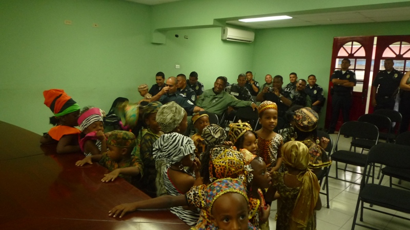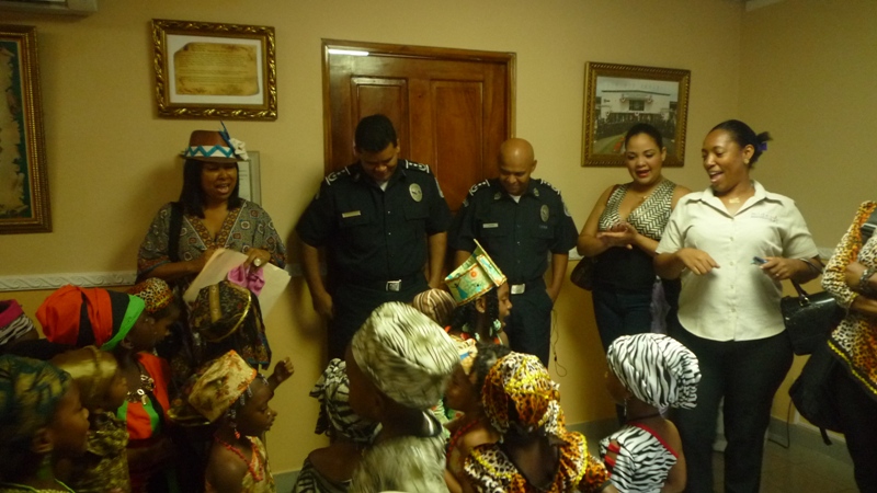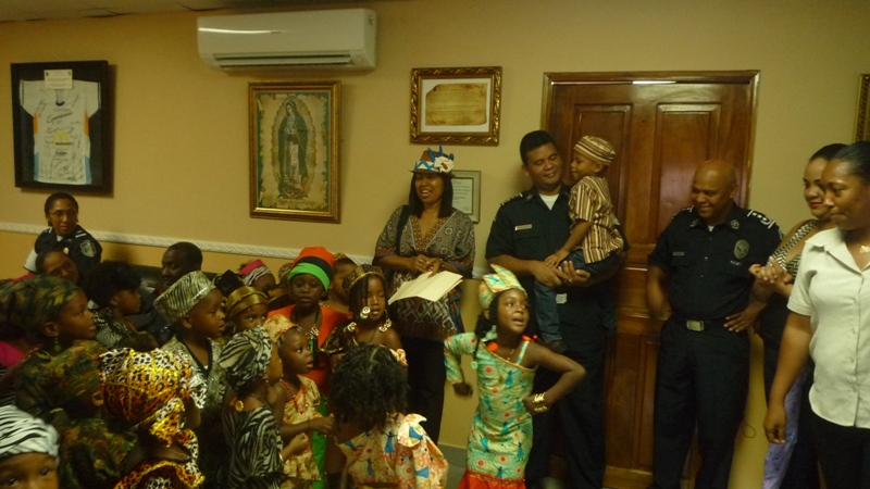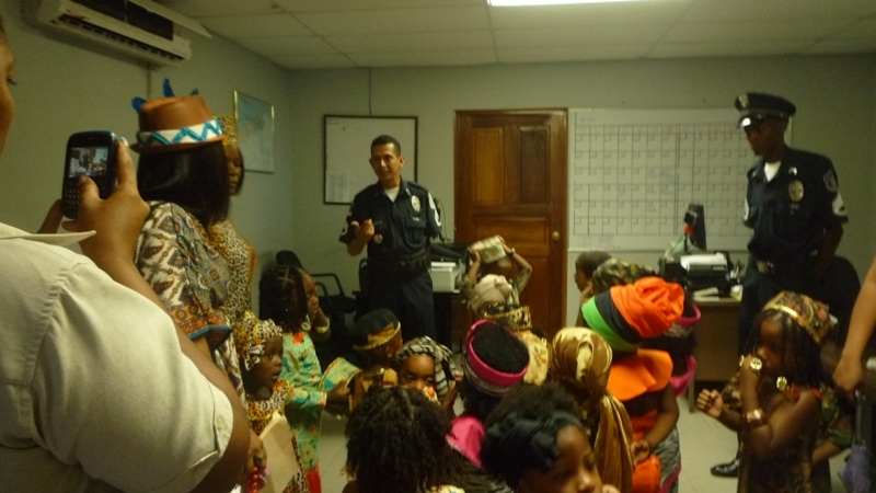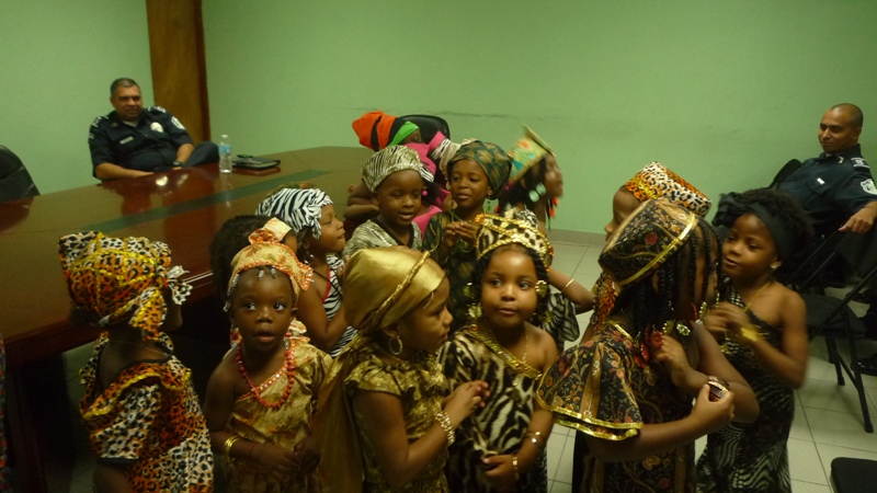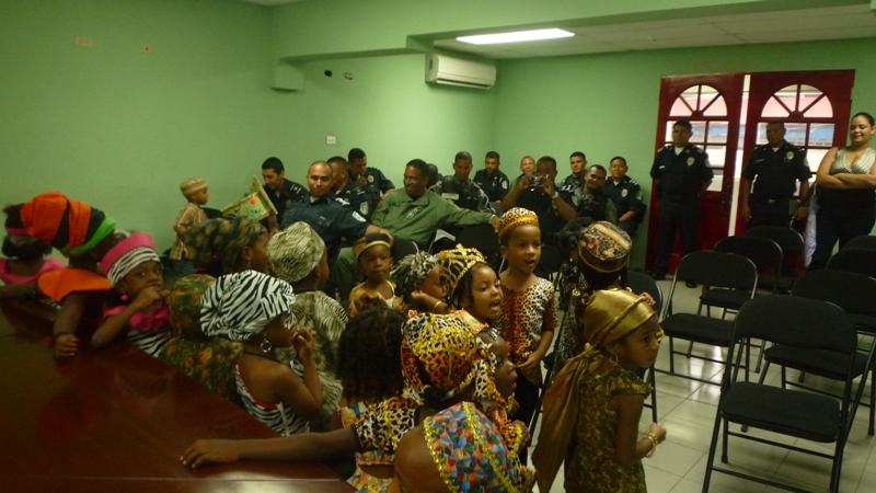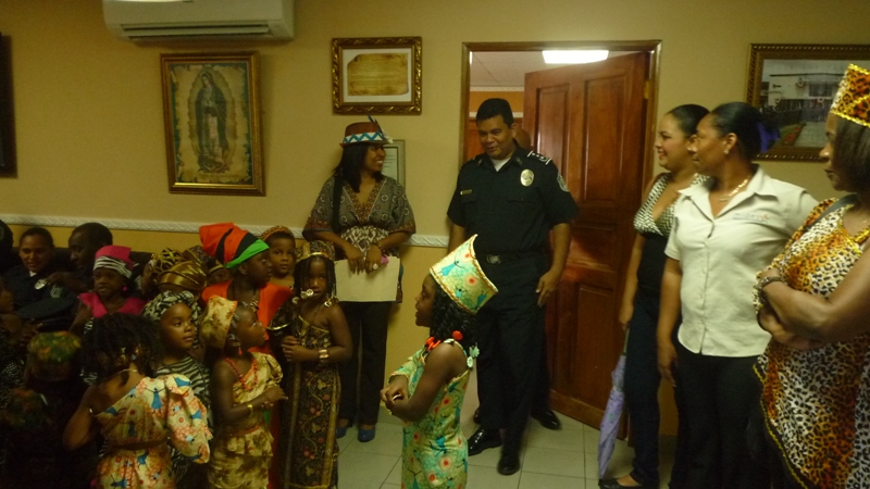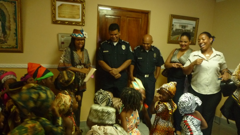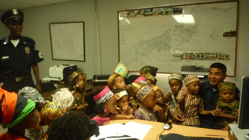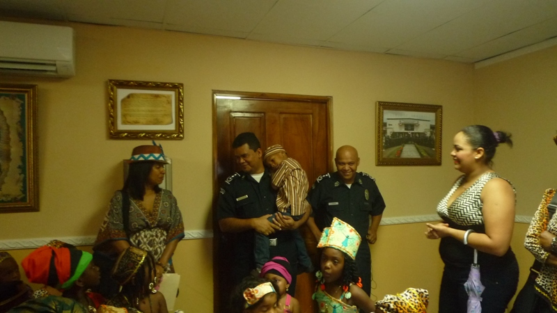 En horas de la mañana de este jueves 29 de mayo las instalaciones de la zona de Policía de Colón, fue regada de alegría con la visita de unos 30 niños que cursan el kínder de la escuela San Gabriel, ubicada en la calle 3 avenida Herrera. Los niños fueron recibidos por el comisionado Porfirio Justavino jefe de la tercera zona policial y el comisionado Abdul Ledezma, quienes agradecieron a los maestros y a los niños y niñas por haber escogido a la Policía Nacional, para realizar esta visita, ya que su presencia llenó de alegría el cuartel, agregó que donde hay un niño hay vida. Los infantes explicaron a los comisionado que ellos estaban celebrando el mes de la Etnia Negra, por eso estaban vestidos con ropa alusiva a la fiestas, también le cantaron a los uniformados la canción de los Pollitos y la de los Buenos Días. A los niños se les llevó a recorrer los diferentes departamentos de la zona donde se les explicó el trabajo que realiza cada sección con la finalidad de brindar protección y seguridad a la comunidad. |