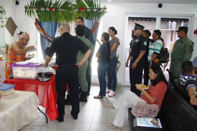 La sede principal de la Policía Nacional en Ancón, se vistió de atuendos propios de la etnia negra para celebrar y simpatizar con la cultura “afro” que pertenece al crisol de razas que caracteriza al panameño. Dentro del comedor principal perteneciente a la primera institución de seguridad pública de Panamá, quienes sirven los alimentos, lucieron sus ropajes con un toque africano. Pero al dar un recorrido dentro de las instalaciones de La Policía, en mención, muchos encontraron un espacio en donde apreciaron más detalles acordes con la cultura del negro colonial en Panamá. Ese sitio que también se conoció, se trata del salón de belleza y masajes de la Policía, en donde se adecuó un pequeño espacio para que los miembros no juramentados y también los uniformados portaran atuendos y accesorios característicos de la celebración afro- antillana, mientras servían en su labor cotidiana. Inclusive, en la sala de belleza, se ofrecieron platillos tales como: arroz con coco, filete de pescado frito, ensaladas diversas, refrescos y el famoso “saus”, que fueron rápidamente aprovechados y degustados por policías tanto altos rangos de la oficialidad, hasta el agente recién graduado de la ISPOL, Instituto Superior Policial. Cabe destacar que el crecimiento y desarrollo de la cultura “afro” ha enriquecido la cultura local. Siendo uno de los aportes importantes la gastronomía y la vestimenta típica. Durante el día de hoy, según la Ley 9 de 30 de Mayo de 2000, todos los centros educativos públicos y privados, como también las instituciones gubernamentales, deberán efectuar eventos para resaltar esta fecha. Con esta actividad se conoció la capacidad creativa de mujeres policías de Panamá quienes se pusieron de acuerdo y unieron iniciativas para idear y confeccionar los atuendos diversos y mostrarse acertadamente al público, acordes y de manera atinada con la celebración. |