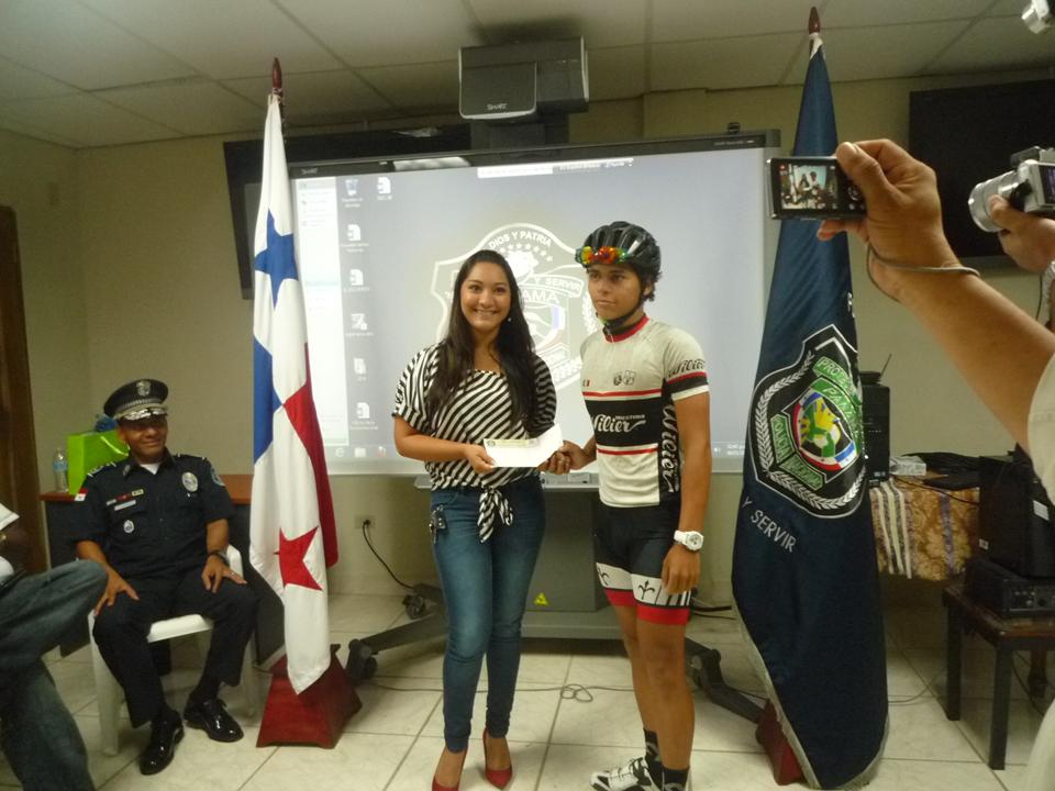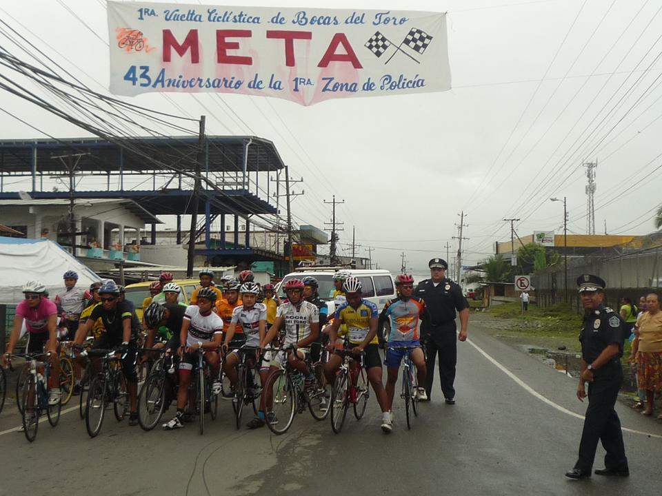 La 1º Zona Policial de Bocas del Toro, en conmemoración de sus 43 años de aniversario organizó la Primera Vuelta Ciclística a Bocas del Toro donde participaron más de 35 jóvenes atletas de la provincia de Bocas del Toro como de la provincia de Chiriquí. El recorrido se realizó tomando como punto de partida la estación policial de Changuinola hasta la comunidad de Almirante donde se retornó nuevamente a Changuinola para tomar carrera hasta la comunidad de La Mesa en Guabito y finalizar con el retorno a la estación policial de Changuinola. El Comisionado Javier Castillo, Jefe de la 1º Zona Policial dio la señal de partida y por tres horas moradores de Changuinola, unidades de la Policía Nacional y familiares de los jóvenes atletas vivieron lo emocionante que es el ciclismo y aún más, cuando es la primera vez que se realiza en la región, todos los periodistas y medios de comunicación se hicieron presente como también organismos como el SINAPROC, la Cruz Roja Panameña y funcionarios de PANDEPORTES, quienes prestaron servicios en cuanto a emergencias médicas. En el primer lugar hubo un empate entre los jóvenes Jordy Castillo de Bocas del Toro y Rodolfo Ayarza de Chiriquí, el segundo lugar fue para Ariel Ramírez, mientras que el joven Jair Gallardo se llevó el premio al mejor novato. En la categoría juvenil los premios fueron para Sandy Guerra, Víctor Lezcano y Francisco Pérez. El Comisionado Castillo manifestó que para el próximo año la Policía Nacional realizará nuevamente este evento con la participación de atletas de otras provincias. |
