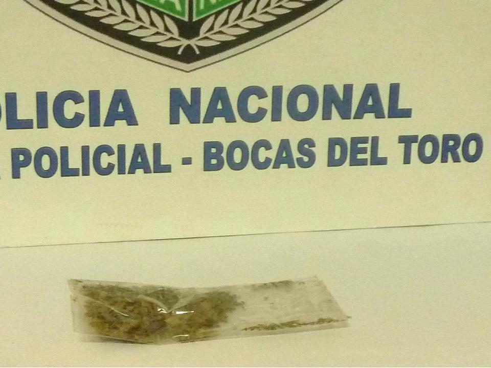 Un sujeto de 21 años fue detenido por las unidades policiales de Bocas del Toro, tras encontrarcele un envoltorio con cierta cantidada de marihuana. El hecho se registró a las 5 y 30 de la tarde de este sábado 7 de junio y conducido a la Sala de Guardia de la Estación Policial de Changuinola. A este sujeto lo delató su propio nerviosismo lo que motivó a las unidades de la Policía Nacional a entrevistarlo, se le dieron a conocer sus derechos y el motivo de su retención y fue puesto a órdenes de las autoridades competentes. |
