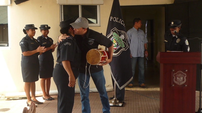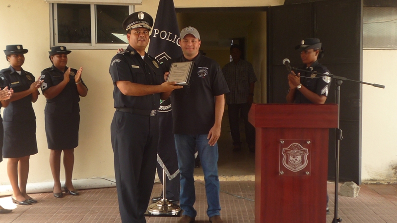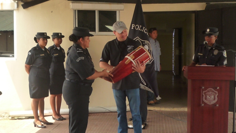 Un acto de reconocimiento en honor al ingeniero Julio Moltó director General de la Policía Nacional, realizaron las unidades de la Zona de Policía de Colón en horas de la mañana de este miércoles 11 de junio Las unidades de la zona recibieron al director con una calle de honor y con aplausos, por la satisfacción de haber trabajado bajo su mando. En ingeniero Moltó agradeció a las unidades por el trabajo que diá a día realizan en bien de la comunidad coloneses y reconoció el trabajo arduo que realizan las unidades que aveces tienen que sacrificar el tiempo de estar con su familia, para servirle a la comunidad. Moltó reconoció la labor de los miembros de la zona policial de Colón, entregándole una placa al Comisionado Porfirio Justavino jefe de la zona. La subteniente Evangelina Sambrano, en nombre de las unidades policiales le entregó al director un tambor repicador que se utiliza en los toques de los bailes congos que caracterizan a la región. El director estuvo acompañado por el Comisionado Miguel García Director Nacional de Operaciones y del Comisionado Aldo Macre, Director Nacional de Operaciones del Tránsito. |