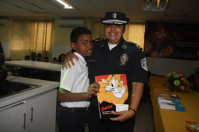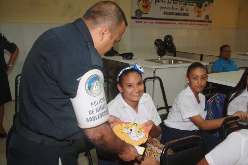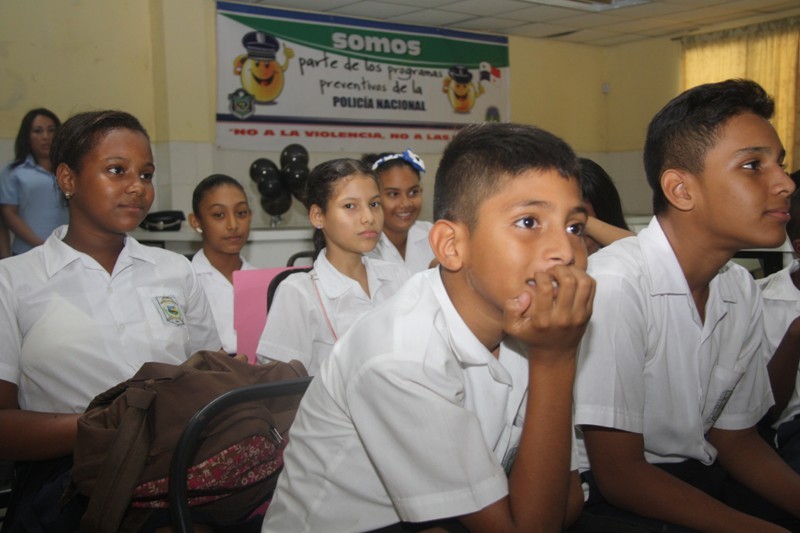 Cuatrocientos sesenta (460) estudiantes del Centro Básico Residencial Vista Alegre en Arraiján serán beneficiados con los programas GREAT y DARE que desarrolla la Policía Nacional, los cuales fueron inaugurados este lunes 16 de junio con la participación de autoridades locales. En el programa DARE participarán alumnos de sexto y séptimo grado por un periodo de 3 meses; mientras que los estudiantes de primer año de pre media serán instruidos en el programa GREAT por 6 meses. La subteniente Raquel Sánchez, de la Policía de Niñez y Adolescencia explicó que mediante charlas dinámicas se refuerzan los valores y autoestima, se les enseña a desarrollar destrezas para resistir y hacer frente a los problemas que dificulten su proceso escolar, como el acoso o bullying, las drogas y las pandillas. La niña Hillary Cáceres, del sexto grado expresó su alegría ante la presencia de los uniformados en su plantel, debido a que aprenderán mucho e ellos y su entorno estudiantil será más seguro. El licenciado Elvin Miller, director de este centro básico dijo sentirse complacido con el apoyo que la Policía Nacional brinda a favor del bienestar de los estudiantes, facilitándoles herramientas que contribuyen a su buena formación. Durante esta capacitación también serán orientados los docentes y padres de familia, que junto a los alumnos se convertirán en agentes multiplicadores de cambio, garantizando el éxito de los objetivos de ambos programas. El Centro Básico Residencial Vista Alegre en Arraiján se convierte en el noveno plantel educativo de este distrito que se suma a los programas GREAT y DARE en lo que va del año 2014. |