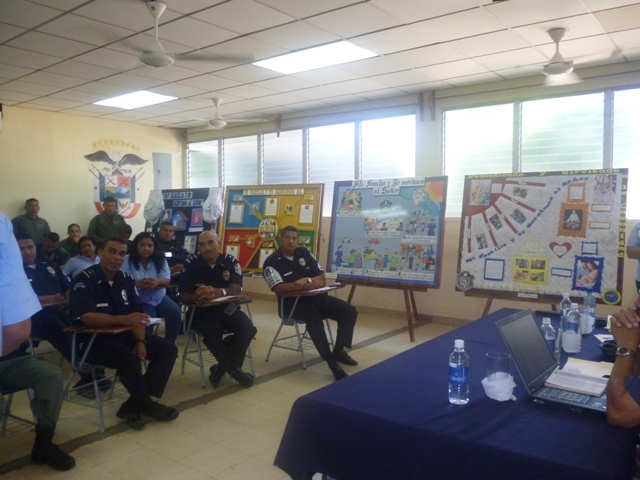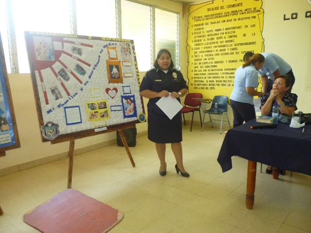 La Novena Zona Policial, realizó para conmemorar la Semana de la Familia un Foro Denominado “Mi Familia Y Yo Le Servimos Al Señor”, de manera especial donde la pareja de esposos Salazar expusieron sus vivencias durante 28 años de matrimonio en la salud y en la enfermedad superando todos los retos hasta que Dios lo disponga así lo dieron a conocer. El foro a través de los cuales los hombres y mujeres policiales intercambiaron ideas y opiniones, orientadas a evidenciar la importancia de fortalecer los valores morales y sociales al interior de cada familia. El foro contó con la participación del Padre Noel capellán de esta zona, así como también el reverendo de la Catedral, la Comisionada Ibeth Gonzales jefa Del Departamento de Administración Y Finanzas, quienes fueron los jurados de mesa del concurso de murales, donde los departamento y secciones participantes fueron: Los murales se exhibieron durante toda la semana en la sala de guardia de esta Zona Policial y el concurso se realizó la tarde de hoy en el salón de clases de la ISPOL, donde el jurado tuvo la oportunidad de efectuar la evaluación y luego escogió a los tres primeros. La Comisionada Ibeth Gonzales Jefa Del Departamento de Administración y Finanzas explicó que sin duda la conducta de las personas tiene como base de formación la familia, y es ahí donde se marca el comportamiento de sus integrantes al interior de la misma y en su participación en la sociedad, por eso es importante que a nivel de la institución cada día se adelanten actividades que permitan abrir espacios para el mejoramiento de los niveles de convivencia y relaciones interpersonales. Añadió, que si se forman buenas unidades policiales al interior de sus hogares, muy seguramente la sociedad tendrá a su servicio, uniformados integral. |