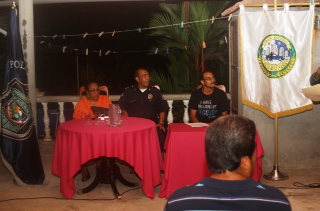 La Dirección de Seguridad Ciudadana de la Zona de Policía Metropolitana a cargo del Subcomisionado Franklin González, inauguró en horas de la noche de este jueves 19 de junio, el Programa de Vecinos Vigilantes en la comunidad rural de Piñal de Río, ubicada en el corregimiento de Alcalde Díaz. Correspondió al Mayor Jorge Moreno, en representación del Comisionado Ramón Nonato López, presidir la ceremonia que incluyó una invocación religiosa a cargo de la Señora Elsa Brión, así como la juramentación del presidente del programa, David Agrio. El acto también contó con la presencia de la licenciada Ana Lizarraga, coordinadora de los Vecinos Vigilantes del sector. La historia del origen de esta comunidad narra que inicialmente eran cuatro fincas productoras de piñas, ubicadas en las márgenes de una quebrada, en donde habitaban tan solo cuatro familias. Hoy en día la comunidad cuenta con 53 familias y más de 200 habitantes que se organizaron para obtener este programa de Vecinos Vigilantes. Los presentes recibieron una charla orientadora en donde se les explicó como deben actuar en caso de presencia de personas, grupos o autos sospechosos en el área; como apoyarse mutuamente en caso de peligro; cómo debe ser el procedimiento para llamar urgentemente a la Policía Nacional, subestaciones y rondas cercanas así de cómo auxiliar a personas enfermas o que sufran graves accidentes. |