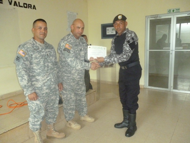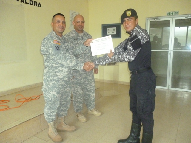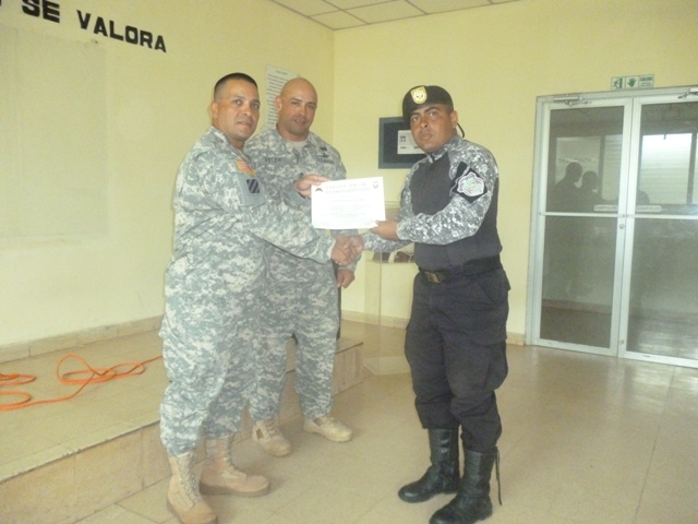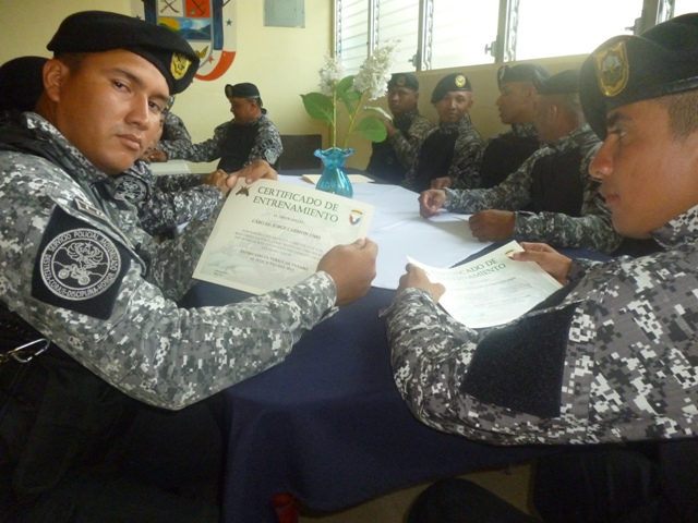 Con la participación de, instructores del Grupo J-Pat del Ejército de los Estados Unidos, e instructores de la armería de la Policía Nacional de Panamá, se celebró la clausura del readiestramiento del curso básico denominado “Táctica de tiro”. El curso tenía como objetivo lograr que las unidades se instruyeran en el contenido teórico-práctico del mismo, para que de ahí en adelante cuenten con herramientas que les permitan realizar un trabajo policial más eficaz y profesional y así poder brindar un mayor seguridad a la ciudadanía, a fin de evitar que se incrementen delitos. El Comisionado Víctor Guerra, ejecutivo de la Zona de Policía de Veraguas, en nombre del Comisionado Carlos A Rumbo y las unidades bajo su mando agradeció a los instructores de la embajada de los Estados Unidos por la capacitación dada al servicio policial motorizado Lince. El Sargento Maestre Omar Vélez en compañía del Sargento de primera clase Raúl Estera, ambos miembros del ejército militar de los Estados Unidos, hicieron entrega de certificado a unidades que con interés esfuerzos y dedicación participaron del curso de táctica de tiro. Mientras que el Sargento Maestre Omar Vélez, destacó por su parte; la seriedad, dedicación, interés y esfuerzo que pudo observar en los participantes durante los días de la capacitación, dio su apreciación en una sola palabra “excelente”, y a su vez espera haber logrado el más importante de las prioridades que es la de impartir los conocimiento adquiridos. |