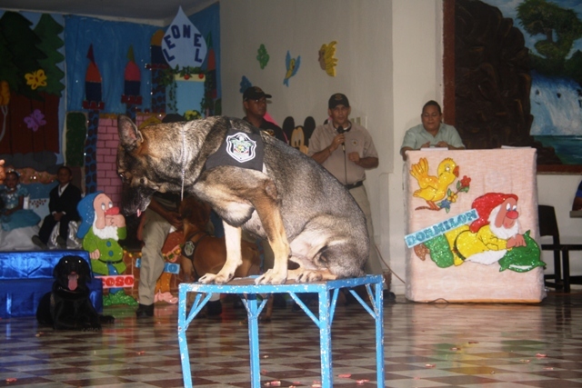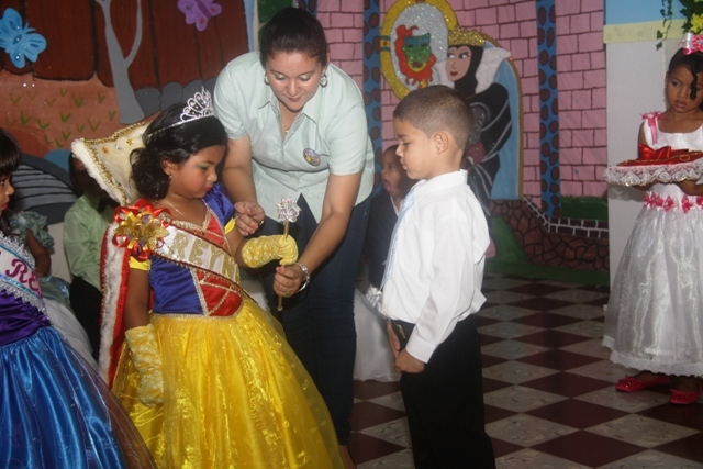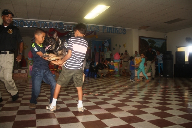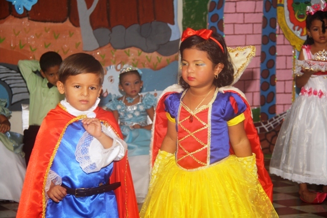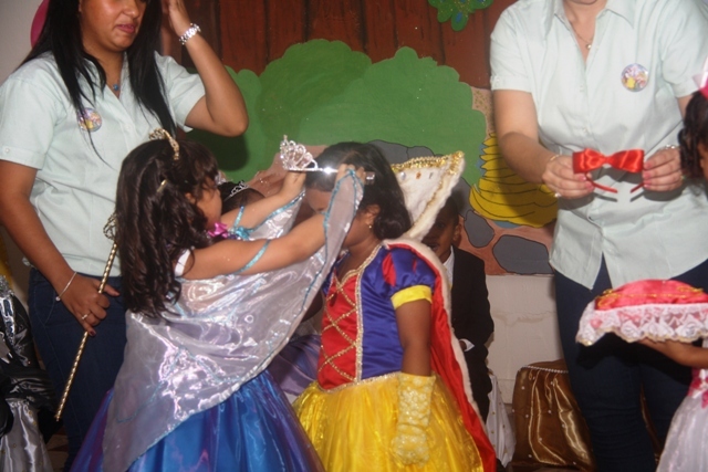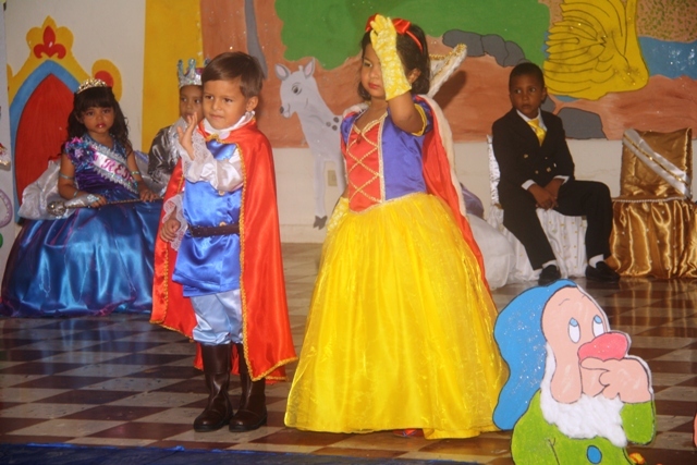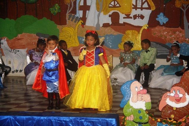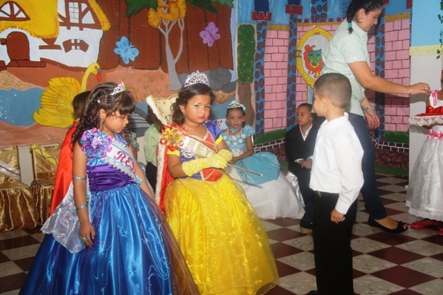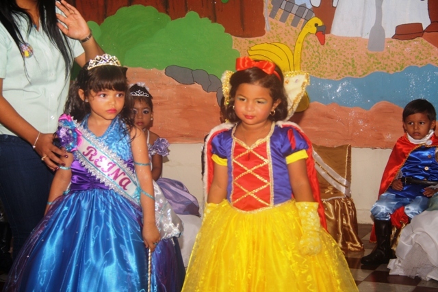 Un cuento de hadas fue lo que vivieron los niños del Centro de Orientación Infantil Los Pininos de la Zona Policial de Panamá Oeste, durante las novatadas 2014; actividad en la que se coronó a su majestad Solángel Marín, alumna del pre jardín. Evocando con su hermoso vestido a Blanca Nieves, esta pequeña hizo su entrada triunfal ante un público que la recibió con aplausos, al ritmo de las notas interpretadas por la banda de Música de la Policía Nacional. la corte compuesta por sus bellas princesas y el Rey, Leonel Rodríguez, la acompañó hasta su trono, donde la reina saliente, la niña Ana Lucia Avión le hizo entrega de la corona, el cetro y la banda, dando paso así a un nuevo reinado de ensueño para los pequeños de este centro escolar. Durante este evento que se realizó en horas de la mañana de este domingo 22 de junio en los Terrenos de la Feria de La Chorrera, los niños demostraron su talento artístico ante los asistentes, que disfrutaron de bailes folclóricos, danzas modernas y la presentación de la Escuadra de la Unidad Canina de la Policía. También hubo ventas de comidas típicas y bebidas. Ambas niñas rodeadas del bello escenario de cuentos, confeccionado por sus propias maestras, dieron las gracias a los presentes, a las docentes y a sus familiares por el apoyo que recibieron y que hace posible la organización de este evento que ofrece un rato de sano esparcimiento familiar. Por su parte, la directora del COIF Los Pininos, Julia de Ortega expresó que con esta actividad se fortalecen los lazos familiares y enaltecen los valores, que son parte de la enseñanza que se imparte en los centros educativos de la Policía Nacional. |