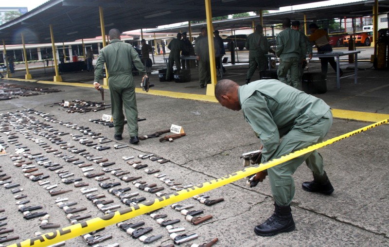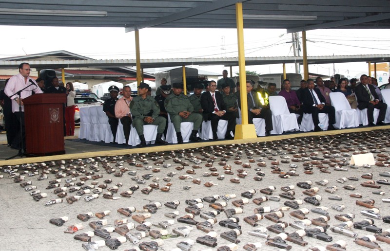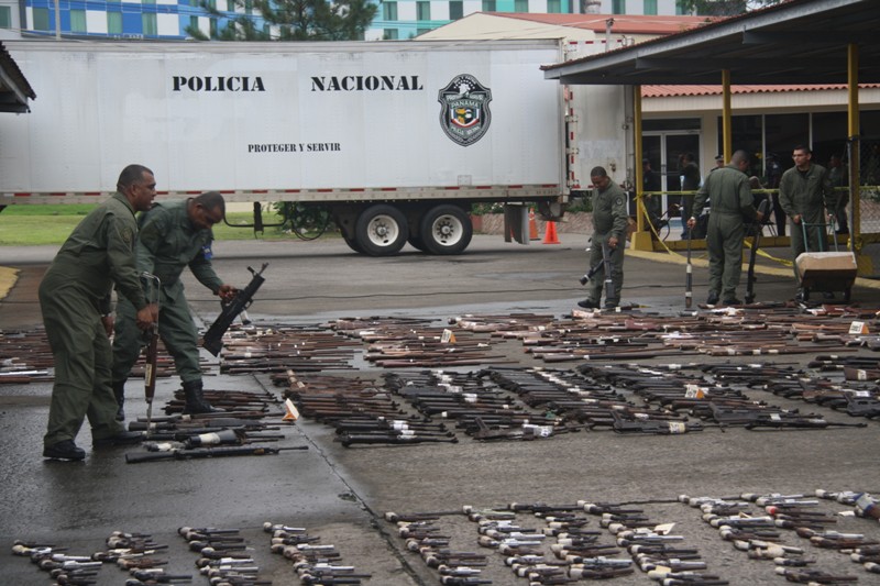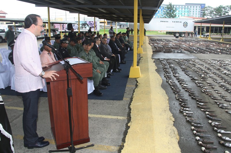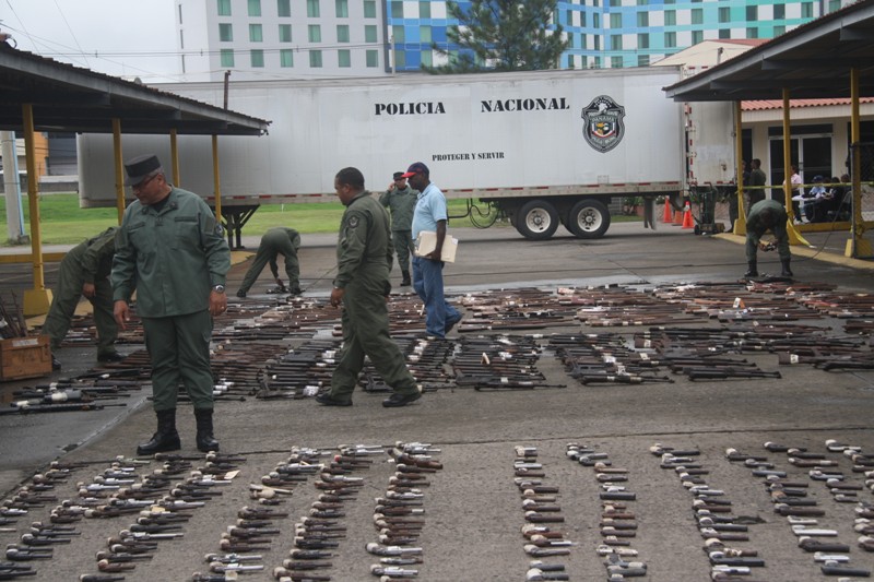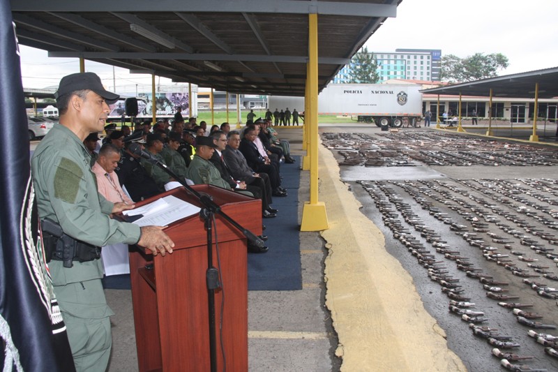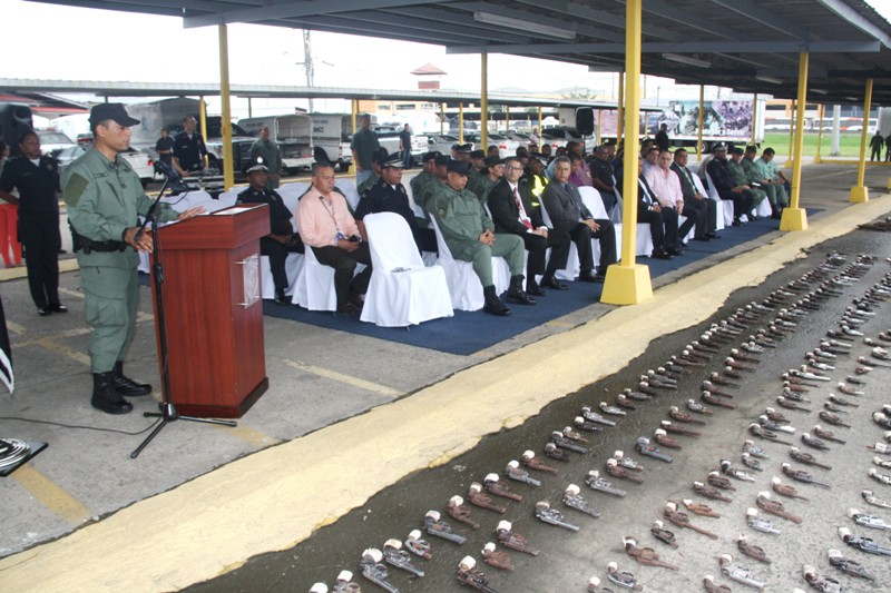 La Policía Nacional destruyó mil novecientos noventa (1,990) armas de fuego en estado no operativo, que han sido decomisadas y puestas a disposición de esta institución de seguridad, por las autoridades competentes de distintas provincias durante los años 1999 a 2013. Entre ellas revólver, pistola, escopeta, rifle, fusil, pélex, Subametralladora, carabina y lanza granada. Hoy la sede de Ancón se convirtió en el escenario donde fueron destruidas estas armas de fuego en estado defectuoso, otras sin número de serie, lo que obligó a sacarlas de circulación mediante su destrucción con acetileno. El Director General de la Policía Nacional, Julio Moltó, solicitó el trámite correspondiente para proceder con la destrucción de dichas armas de fuego, que actualmente se mantenían en el Almacén Oficial de Depósito de Armas y Municiones de la Policía Nacional. En presencia de las autoridades competentes fueron destruidas todas las armas de fuego, recordemos la última destrucción que realizará la Policía Nacional fue en el año 2010 donde se destruyeron mil ochocientos veinte (1,820) armas. |