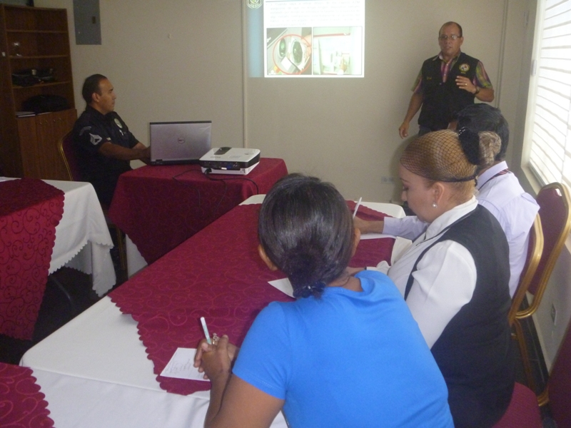 Continuando con el reforzamiento de la seguridad, las unidades de la Policía de Turismo de la Zona Policial de Chiriquí, realizaron el pasado 20 de junio una jornada de capacitación con los colaboradores del Gran Hotel Nacional. El objetivo de esta capacitación es buscar que los trabajadores del hotel sigan tomando las medidas preventivas de seguridad para evitar incidentes como la clonación de tarjetas y detección de billetes falsos u otro casos que afecten el desenvolvimiento en este importante sector. Esta capacitación fue dictada por el Teniente Samuel Gutiérrez, encargado de Turismo, el Sargento 1ro. Eduardo Muñoz del programa Comerciante Vigilantes y el Sargento 1ro. José Fuentes de la DIJ de Chiriquí Los colaboradores agradecieron la orientación por parte de los miembros de la Policía Nacional, quienes le dieron a conocer los delitos que se están dando con la tecnología. El Teniente Samuel Gutiérrez manifestó que la Policía de Turismo sigue implementando las medidas de seguridad turística en el sector hotelero de la provincia.