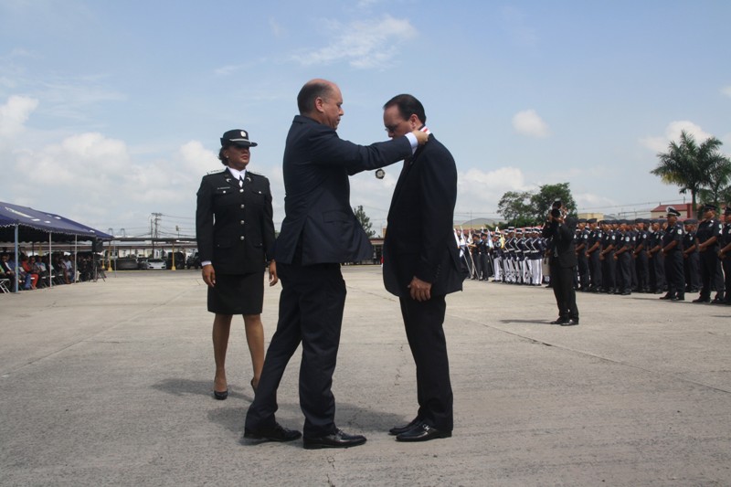 En una ceremonia protocolar realizada en la sede de Ancón, se realizó este miércoles 2 de julio 2014, el cambio de mando, asumiendo formalmente el Comisionado Omar Pinzón, el cargo como Director General de la Policía Nacional. Le correspondió al director saliente, ingeniero Julio Armando Moltó hacerle entrega al Excelentísimo Señor Presidente de la República, Juan Carlos Varela el banderín de la Dirección General, quien a su vez se lo entregó al director entrante Omar Pinzón. Posteriormente, el nuevo director policial le entregó al mandatario el Sable de Mando y placa policial, como jefe máximo de la primera institución de seguridad. En sus palabras, el jefe policial agradeció la confianza depositada ante la nueva responsabilidad de dirigir a la Policía Nacional, a la vez aseguró que se fortalecerá la labor en pro de la seguridad con estricto apego a lo establecido en la Constitución. Enfatizó que el trabajo en equipo será una de las premisas a seguir, y que afianzaran los programas que en materia de seguridad garantizaran la tranquilidad de la comunidad, a la que agradece y solicita su apoyo en la lucha contra la delincuencia. Por su parte, el director saliente, agradeció a todos los miembros de la institución por el apoyo brindado y que hizo que en su gestión, fueran posibles proyectos para beneficio de la comunidad como la creación de la Unidad Preventiva Comunitaria, que le cambio la vida a los residentes de El Chorrillo, Curundú y que también tendrá impacto positivo en Samaria, igual en otros sectores. Lleno de optimismo el presidente Varela dijo confiar en la labor que se desarrollara en la Policía bajo el mando del comisionado Omar Pinzón. "La lealtad es al Estado", expresó, aseverando que la labor será enfocada en la seguridad ciudadana, para lo que contaran con todo el respaldo del gobierno. Durante el acto fue condecorado con la medalla de la Dirección General, el ing. Moltó, misma que fue impuesta por el Ministro de Seguridad, Rodolfo Aguilera. Posteriormente se honró al Pabellón Nacional con un vistoso desfile de honor. En el cambio de mando también estuvieron presentes ministros de Estado, oficiales, agregados militares y policiales acreditados en nuestro país e invitados especiales. El comisionado Omar Pinzón se ha desempeñado como agregado policial, aéreo y naval, en Washington D.C.; representante de Panamá ante la Junta Interamericana de Defensa; jefe del departamento antidrogas; jefe de la Zona de Policía del Canal de Panamá; jefe de la zona policial de Veraguas; subdirector general de investigación judicial y director nacional de inteligencia.