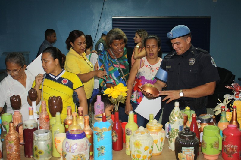 Más de 25 mujeres artesanas residentes en el barrio de Curundú realizaron la exposición de sus materiales reciclables que son considerados objetos cotidianos como jarrones, botellas, máquinas de coser, ollas vajillas, platos, y electrodomésticos de cocina fueron transformados en piezas de artes. Las mujeres del sector de Curundú, dieron a conocer su trabajo, mediante una exposición que formó parte de la clausura del programa de capacitación que tuvo una duración de tres meses y fue impartido por Geovana Canova, integrante y facilitadora del Centro de Capacitación y Género del Municipio de Panamá. El objetivo primordial de este taller es recuperar a través de estas y otras técnicas reducir la cantidad de basura que son lanzadas a los ríos, quebradas y riachuelos que con el pasar del tiempo perjudican al medio ambiente. Además de apoyar a las mujeres del barrio, ofreciendo oportunidades de superación y desarrollo, a través de la venta de sus artesanías. Los cursos fueron dictados en el salón de capacitaciones del Centro Comercial del Proyecto de Curundú, donde los materiales utilizados por estas mujeres fueron plástico, vidrio, madera, metal, entre otros. La Unidad Preventiva Comunitaria (UPC) de Curundú, El Municipio de Panamá, y los programas de sostenibilidad de la empresa Odebrecht, y su Proyecto Saneamiento de la Ciudad y la Bahía de Panamá, unieron esfuerzos, para fortalecer la integración social de las comunidades vecinas y sus alrededores, no se descarta que este proyecto llegue a otros sectores del país, donde inculcarles el hábito de disponer con responsabilidad los desechos será el norte del curso. |