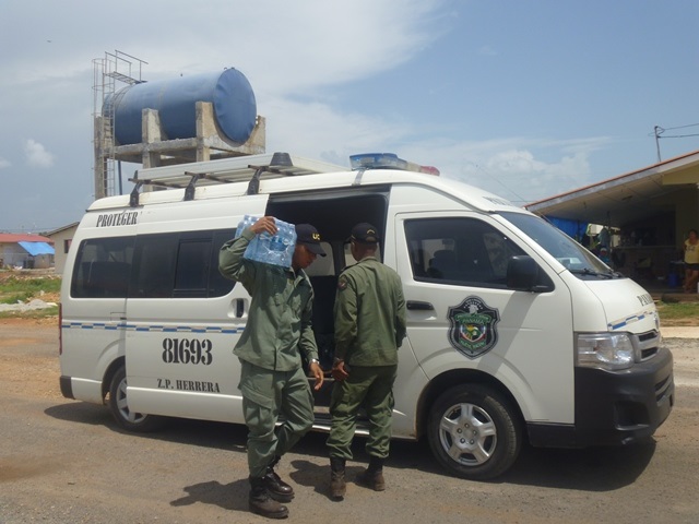 Producto de la contaminación del Rio La Villa donde se encuentra la planta potabilizadora de la provincia de Herrera, con un herbicida denominado Atrazina. Se han visto afectadas las comunidades del distrito de Chitré ya que el agua no es apta para el consumo humano, razón por la cual se ha decretado zona de emergencia desde el día 2 de Julio del presente año. Por tal motivo la institución a través de la Sexta Zona de Policía de Herrera, bajo la Jefatura del Sub Comisionado Ismael Herrera, ha estado apoyando el OPERATIVO DE DISTRIBUCION DE AGUA POTABLE, a todos los moradores del distrito de Chitré, casa por casa. Para tal fin se han desplegado un total de 215 unidades de diferentes dependencias y Zonas Policiales. Con ello no solo buscamos Proteger y Servir, tal como lo dice su lema, si no también brindar un servicio solidario-humanitario a la comunidad Chitreana. El Subcomisionado Ismael Herrera, ha estado trabajando en completa coordinación en esta causa, con el viceministro de Seguridad Publica, Rogelio Donadío y el Director del Sistema Nacional de Protección Civil, José Donderis. Un total de 131, 000 cajas de agua potable se han entregado a todos los moradores del distrito cabecera.