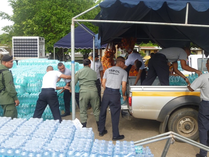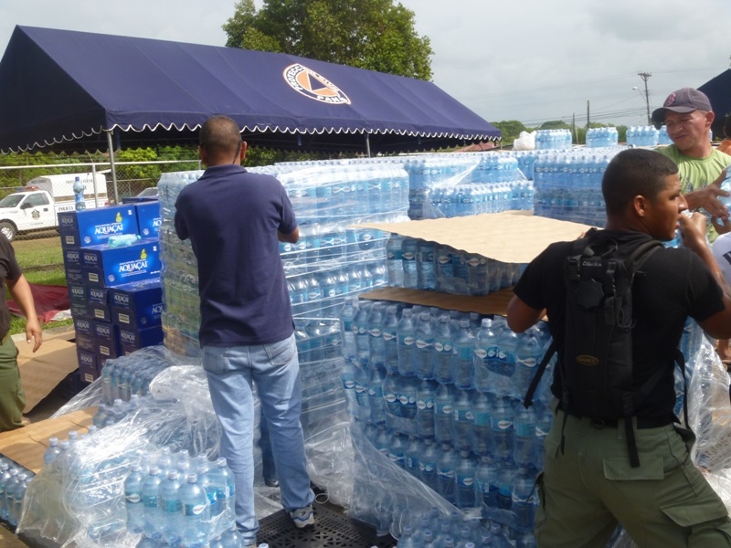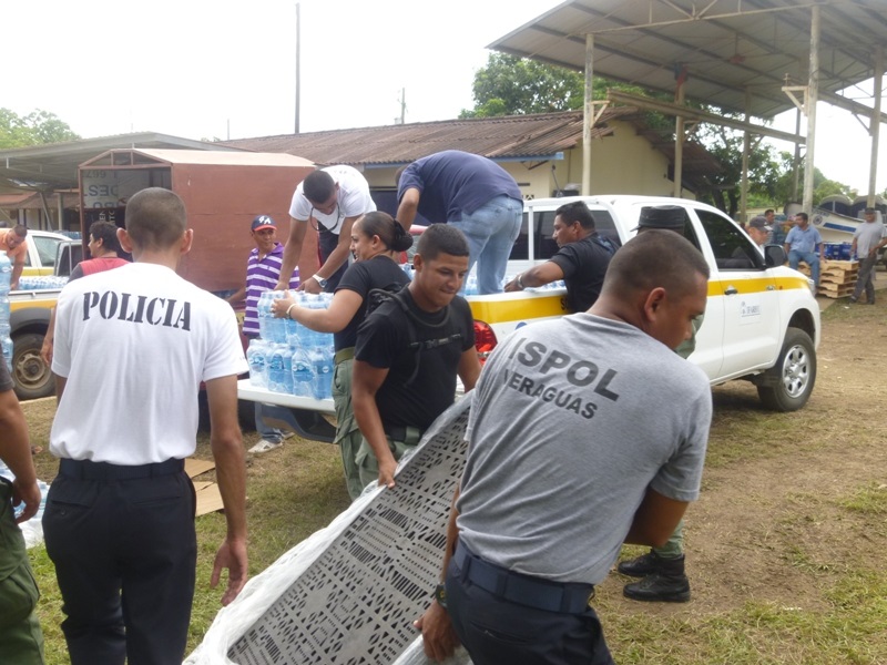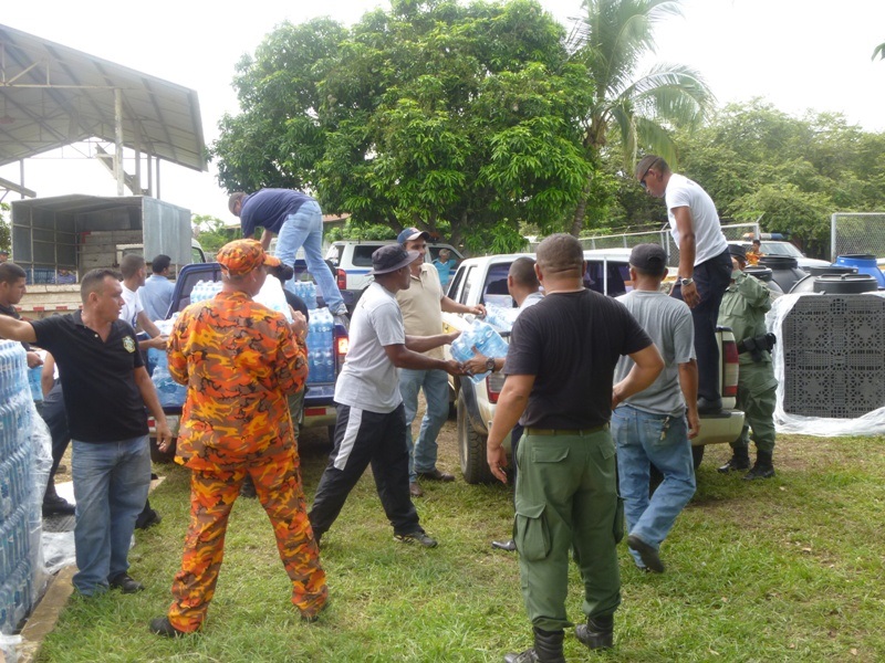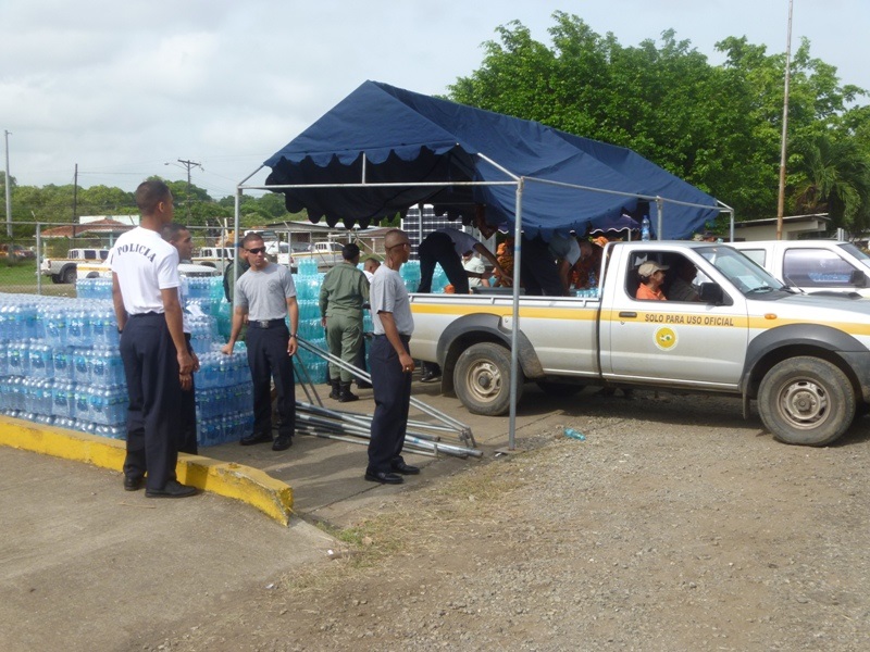La Zona de Policía de Los Santos en coordinación con el Sistema Nacional de Protección Civil (SINAPROC), se encuentra distribuyendo agua embotellada a los residentes de los distintos corregimientos de la región de azuero ante la contaminación del Río La Villa. Unidades policiales y estudiantes del Instituto Superior Policial (ISPOL), extensión Veragua han apoyado en la custodia y descarga de las botellas de agua la cual son almacenadas en las instalaciones de Protección Civil, posteriormente los vehículos de diferentes instituciones son cargados para proceder a la distribución en diferentes comunidades afectadas. |