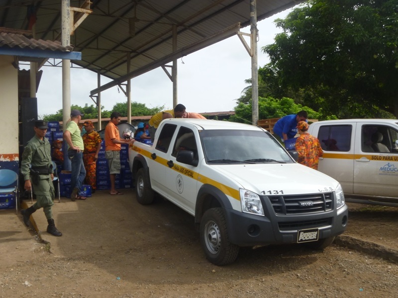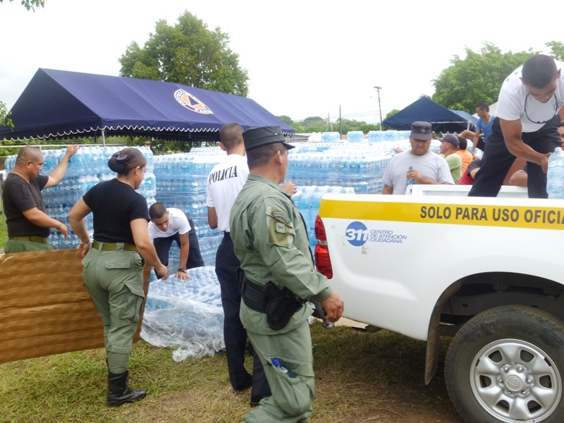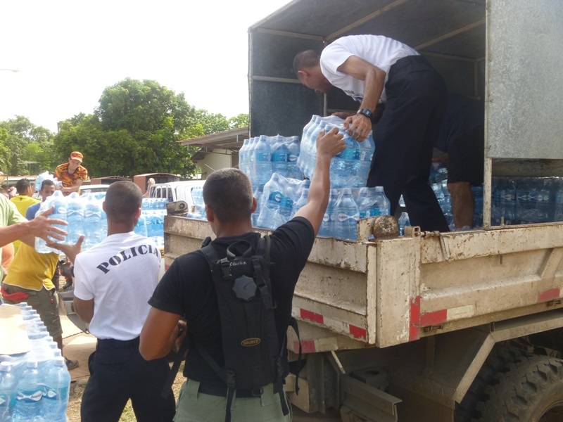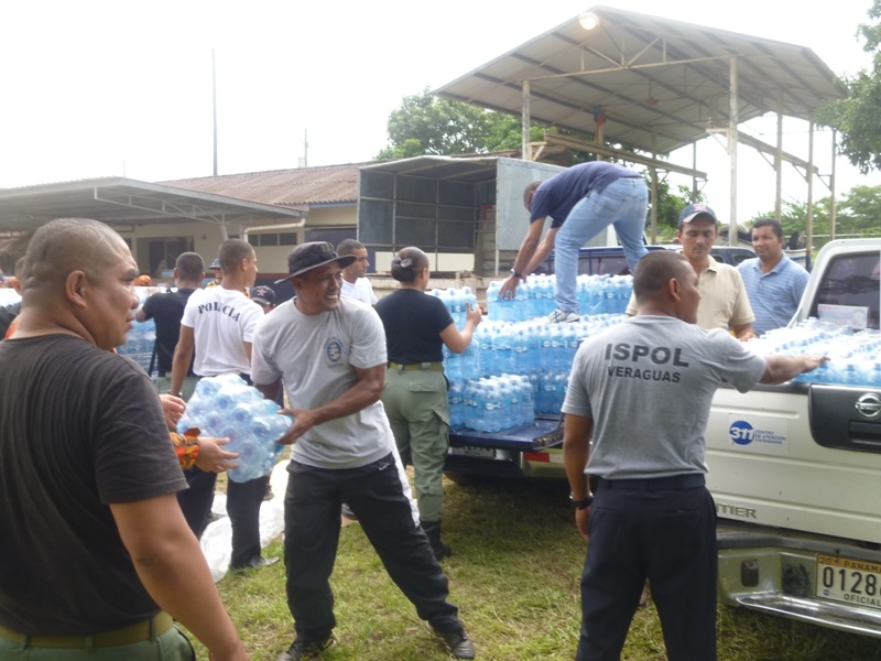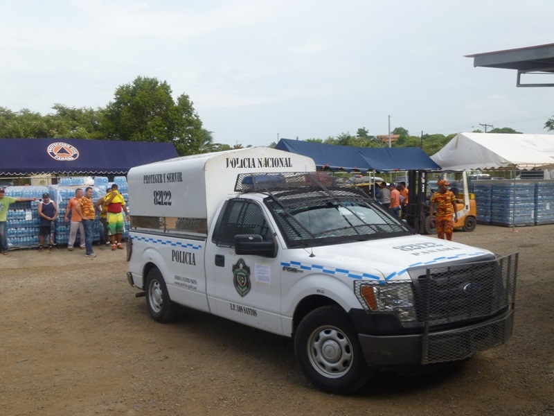 POLICÍAS EN LOS SANTOS APOYAN EN LA DISTRIBUCIÓN DE AGUA EMBOTELLADA