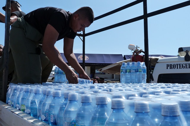 LA PRIMERA DAMA, JUNTO A UNIDADES POLICIALES DE HERRERA ENTREGA AGUA EMBOTELLADA A ESTUDIANTES