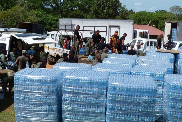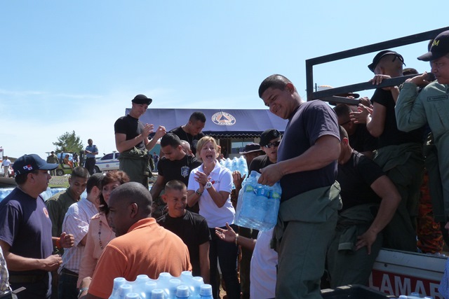 La Primera Dama de la República de Panamà, Lorena Castillo de Varela, efectuó un recorrido en la mañana de este lunes 7 de julio al centro de acopio de agua embotellada, ubicada en las instalaciones de la sede de la 6ta. Zona de Policía de Herrera. Un nutrido grupo de unidades policiales de diferentes estamentos, se sintieron muy contentos al ver la presencia de tan distinguida personalidad como lo es la primera dama quien instò a continuar con este trabajo de solidaridad humanitara. El Ministerio de Salud ordenó el no consumo de agua a través de los grifos, porque los niveles de toxicidad se mantienen en el Rio La Villa el cual está contaminado por el herbicida denominado Atrazina. |