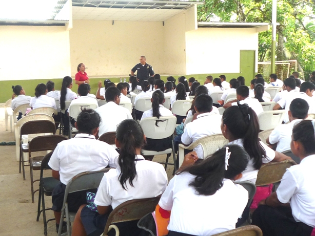 Unidades de la Policía Nacional asignados a la provincia de Coclé, se trasladaron este martes, hasta la comunidad de San José del General, distrito de Donoso, provincia de Colón, lugar donde brindaron charlas relacionadas a los requisitos que se requieren para ingresar a la Policía Nacional. A la actividad asistieron estudiantes de quinto y sexto año del Instituto Profesional y Técnico de Coclesito, a los que se les informó de la oferta académica que brinda la Policía Nacional, a los que ingresen a este organismo de seguridad, el cual gradúa agentes de policía, con el título de Técnicos en Seguridad Pública Policial, título que es avalado por la Universidad de Panamá, en el Instituto Superior Policial (ISPOL); así como también la oferta académica de la Escuela de Oficiales, la cual gradúa Subtenientes de Policía, con el Título de Licenciados en Administración Pública Policial, titulo avalado también, por la Universidad de Panamá. La comunidad de San José del General, conocida comúnmente como Coclesito, es geográficamente parte de la provincia de Colón, pero, por ser más fácil su acceso por la provincia de Coclé, es atendida por la Segunda Zona Policial. Los educadores y estudiantes quedaron complacidos con la actividad, solicitando también se les brinde orientación en otros temas, como el bulling, la presión de grupo, el peligro de las drogas, entre otros temas de interés para ellos. |