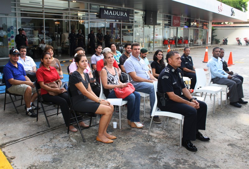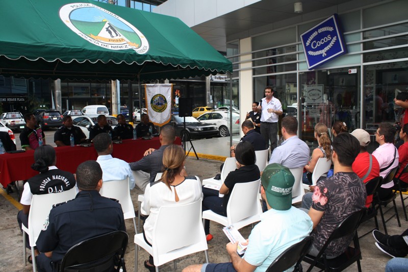 Con miras a fortalecer la seguridad de los comerciantes, clientes, peatones y personas que brindan diversos tipos de servicios, la Policía Nacional de Panamá inauguró el Programa Comerciantes Vigilantes en la Plaza 58 Strip, ubicada en la calle 58 de Obarrio del corregimiento de San Francisco. El acto contó con la presencia del Comisionado Bolívar Lasso, Director Nacional de Seguridad Ciudadana; el Subcomisionado Carlos Ortiz, Jefe del Área Metropolitana y el Subcomisionado Federico Oberto, Jefe del área policial de Bella Vista. Igualmente estuvo presente el señor César Mazzei, Coordinador del Programa Comercios Vigilantes en Obarrio además de gerentes, subgerentes, propietarios y personal que labora en los 16 comercios que posee la Plaza 58 Strip. Los participantes acordaron la mutua colaboración y el uso de la tecnología para lograr la prevención y combate del delito en dicho sector. “Una cosa fundamental y que están probando los comerciantes es como a través del Wasap de los celulares, pueden comunicarse y compartir información sobre personas, autos y motos sospechosas en el área”, explicó el Comisionado Bolívar Lasso, quien añadió que esta es una modalidad que se está usando de manera positiva a nivel nacional. |