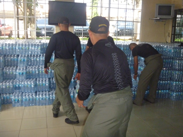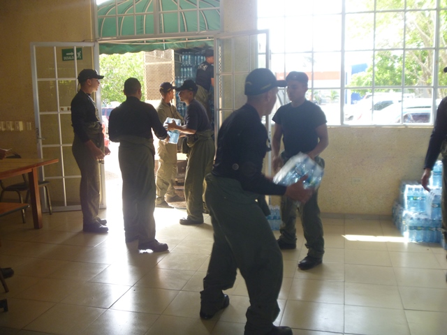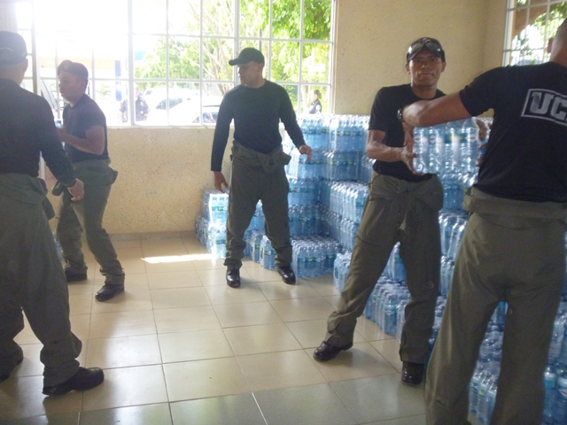 La Unidad de Control de Multitudes, es un grupo especializado de agentes de la Policía Nacional, para controlar el accionar de la muchedumbre y dispersar las manifestaciones no autorizadas, violentas o de cualquier índole que afecten el orden público. Sin embargo en el desarrollo del operativo de entrega de agua potable en botella, en el distrito de Chitré, este renombrado Grupo Policial, dejaron a un lado sus Escudos y gases irritantes, para aportar a esta noble causa. Fueron varios los puntos de distribución de agua, siendo uno de los más importantes La Universidad de Panamá, sede de Azuero, donde el capitán Leandro Ortíz y sus 20 unidades, llevaron la cantidad de 1, 000 Cajas de Agua. Labores como estas enaltecen nuestra Institución, dando a demostrar a la ciudadanía, que estamos para “PROTEGER Y SERVIR”. |