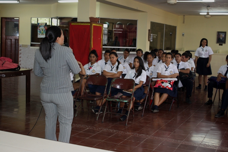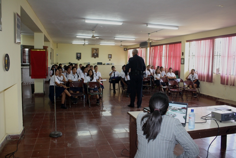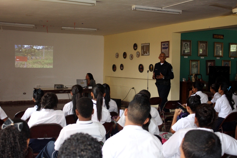 Encargados del Departamento de Reclutamiento y Selección de la Policía Nacional, estuvieron de visita en los diferentes centros educativos de la provincia de Coclé, impartiendo docencia sobre los beneficios que brinda la Institución al ingresar a la Policía Nacional. Las docencia fue dictada por el Teniente Santiago Olivares, la Licenciada Marjorie Frago Trabajadora Social y el Sargento 2do Edgardo Soriano, quienes dijeron estar complacidos por el recibimiento de los alumnos y el interés mostrado con la carrera policial, beneficios como trabajo laboral estable con permanencia, poder seguir estudiando, buen salario y beneficios para los familiares. A los mismos se les presento el tema " El Proyecto de Vida y la Carrera Policial ", donde la motivación, la autoestima y algunas técnicas mostraron que vale la pena la oportunidad que brinda la institución. Entre los colegios visitados están el Instituto Marina Mercante, Colegio Rodolfo Chiari, Colegio Secundario El Roble, Instituto Profesional y Técnico e Industrial de Aguadulce (IPTIA), Colegio Secundario Mariano Prados, Colegio Salomón Ponce Aguilera, Instituto Profesional y Técnico El Valle de Antón, Centro de Enseñanza Superior de Bellas Artes y el Colegio Leonila Pinzón de Grimaldo. Por su parte el Teniente Santiago Olivares, exhortó a los estudiantes a continuar sus estudios y que se animen a formar parte de las filas de nuestra institución que tiene como compromiso garantizar la seguridad de la ciudadanía. |