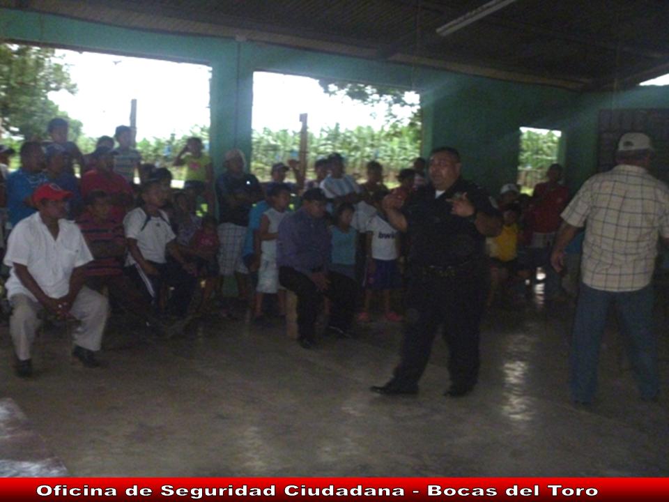 La Oficina de Seguridad Ciudadana de la 1º Zona Policial de Bocas del Toro ha iniciado una serie programada de visitas a todos los barrios y comunidades de la provincia con el objetivo de reestructurar todas las Juntas Directivas de los Programas de Vecinos Vigilantes y Comerciantes Vigilantes que se mantenían inactivas. La programación ha iniciado con los moradores de la comunidad de Finca 02 y el Grupo de Comerciantes Asiáticos de Changuinola quienes ya han asignado sus nuevas juntas directivas. El Comisionado Javier Castillo, Jefe de la 1ª Zona Policial ha reforzado el Departamento de Vecinos Vigilantes con la asignación del Teniente Ramiro Morales como Oficial encargado donde se esperan cambios positivos en cuanto a la aplicación de este programa en los barrios y comunidades. |