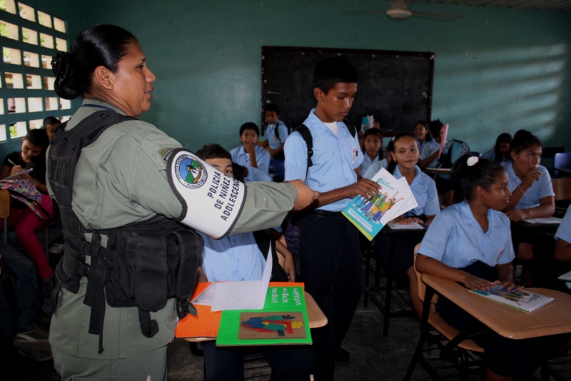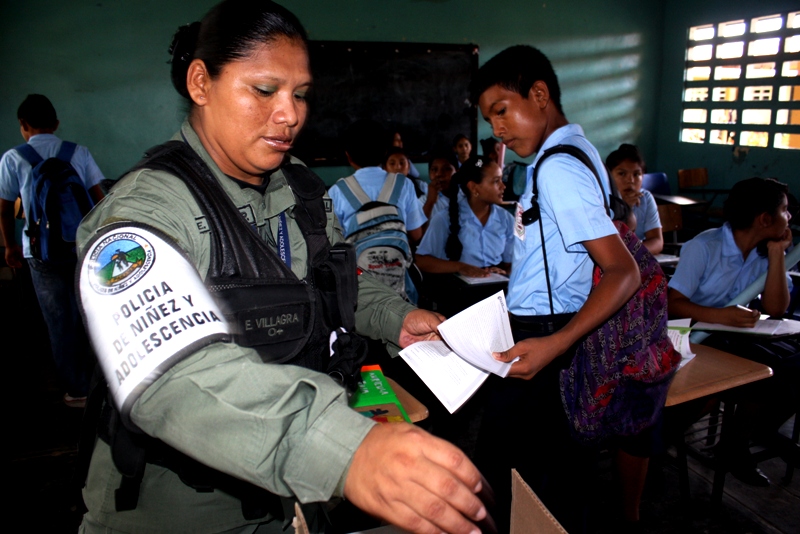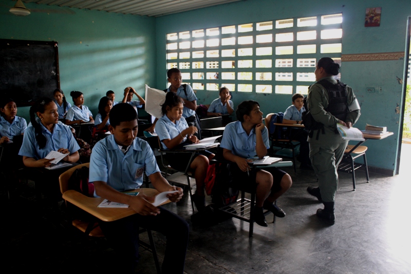 A través del departamento de Niñez y Adolescencia de la 2da Zona Policial, se mantienen los continuos conversatorios en las escuelas de la provincia, con la finalidad de erradicar la violencia estudiantil mediante programas como GREAT siglas que significan Educación y Entrenamiento para la resistencia a las Pandillas. En esta ocasión los alumnos del séptimo grado del Instituto Profesional y Técnico Leonila Pinzón de Grimaldo, se sumaron a este programa donde fueron orientados por la cabo Eira Villagra especialista en esta materia y quien compartió con ellos temas como el papel que desempeñan los estudiantes en sus familias , escuelas y comunidades. La cabo dijo que el objetivo es lograr que la juventud desarrolle la capacidad de adaptación, para evitar la asociación con pandillas y conductas violentas. La actividad participativa de los estudiantes fue lo que se destaco, estos programas le permiten la oportunidad de participar en actividades tales como juegos de rol y trabajos en grupos donde ellos llegan a reconocer las medidas de seguridad y prevención fue otras de las cosas que afirmo la idónea en la materia. |