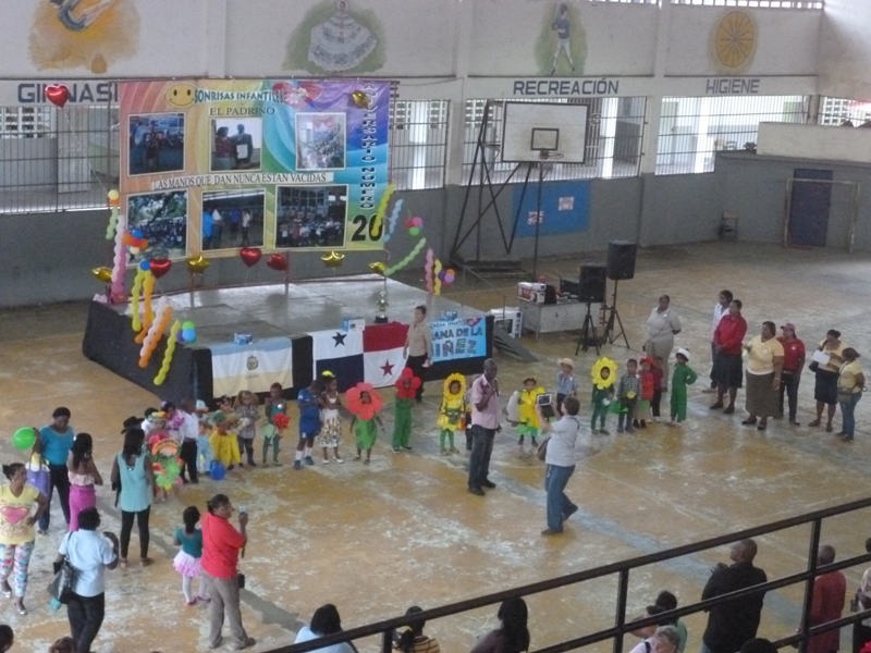 Los niños y niñas que conforman el pre kínder y el kínder del centro de orientación infantil Los Pininos, de la tercera zona policial de Colón, participaron en el desfile y actos que realizó el profesor Wilfredo Bakley. El profesor celebraba los 20 años de aniversario de su programa Sonrisas que trasmite de lunes a viernes en horario de 5 a 7 de la mañana en la emisora de radio Rumba Stereo. Este programa que es educativos dirigido exclusivamente a los niños y niñas de la con la finalidad de inculcarles valores. La actividad se realizó en el gimnasio del Instituto Profesional y Técnico de Colón, ubicado en el corregimiento de Cativá.