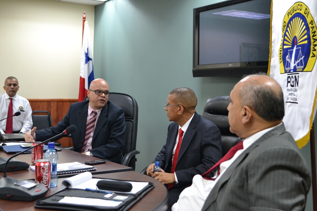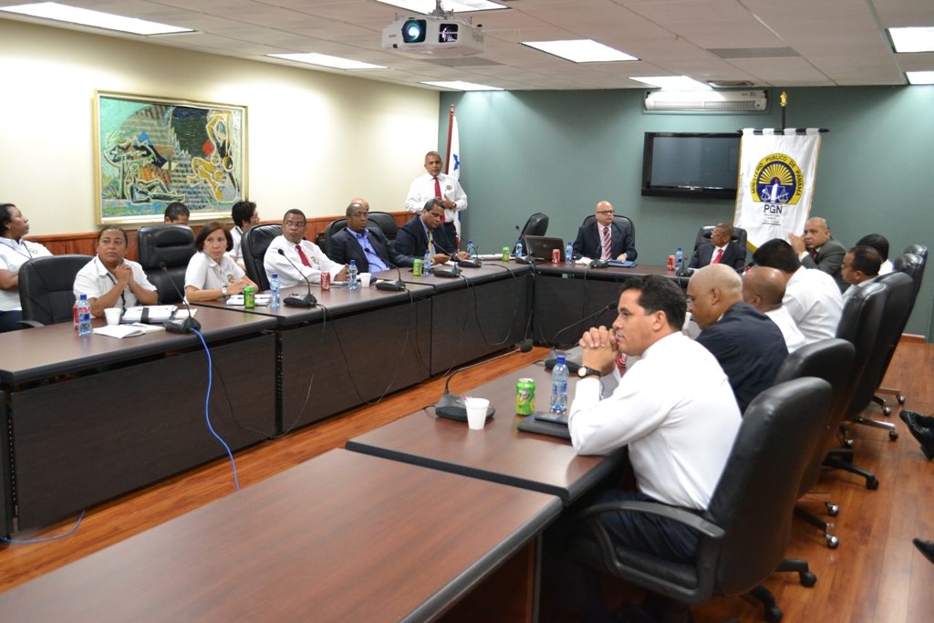Con el objetivo de reforzar el acercamiento entre las autoridades judiciales y trazar estrategias para contrarrestar los hechos delictivos, el Comisionado Marcos Córdoba Director de Investigación Judicial realizó una reunión de coordinación con autoridades del Ministerio Público. El encuentro llevado a cabo en el salón de reuniones del Ministerio Público, estuvo presidido, además del director de la DIJ, por el Secretario General de la Procuraduría, Ramsés Barrera, quienes intercambiaron juicios y opiniones sobre los aspectos de comunicación, enlace y efectividad de las comisiones realizadas por la DIJ en coordinación con el MP. Tanto Córdoba como Barrera y los fiscales presentes durante el encuentro, estuvieron de acuerdo a la necesidad de reforzar la calidad de investigación con nuevas tecnologías y personal capacitado de acuerdo a las áreas investigativas que acarrea cada división amoldando las técnicas según la necesidad del país. Ambos se hicieron acompañar de otras altas autoridades como la Secretaria de la Procuraduría, Marta Gómez; el Fiscal Auxiliar de la República, Marcelino Aguilar; el Fiscal Contra los Delitos Relacionados con Drogas, Javier Caraballo; el Fiscal Contra El Crimen Organizado, Roberto Moreno, oficiales y jefes de Divisiones de la DIJ. |