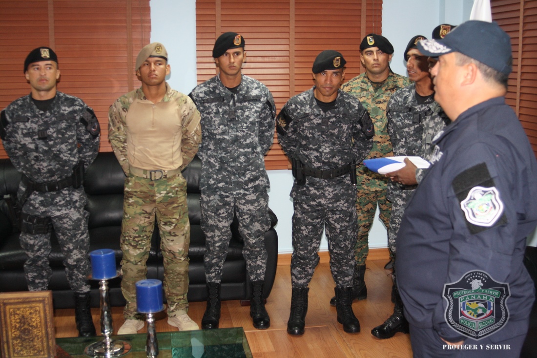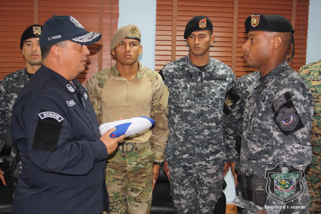 El Director de la Policía Nacional, Omar Pinzón, recibió en su despacho a las siete (7) unidades de las Fuerzas Especiales de la Policía, donde le hizo entrega de la bandera nacional a este equipo, que participará de la competencia “Fuerzas Comando 2014” en la República de Colombia del 23 al 2 de agosto del presente año. Este equipo policial está conformado por cinco unidades policiales, una del Servicio Nacional Aeronaval (SENAN) y una del Servicio Nacional de Fronteras (SENAFRONT), quienes se han preparado fuertemente para dejar en alto a la institución y a la Nación a nivel internacional. Esta competencia se desarrollará específicamente en la región de Tolemaida (Colombia), donde los atletas se destacarán en pruebas de fuerza física, francotirador, destreza, eventos de tiros y salto militar, entre otras disciplinas. Finalmente, la autoridad máxima de la Policía, exhortó a los deportistas a dar lo mejor de sí, deseándoles muchos éxitos.